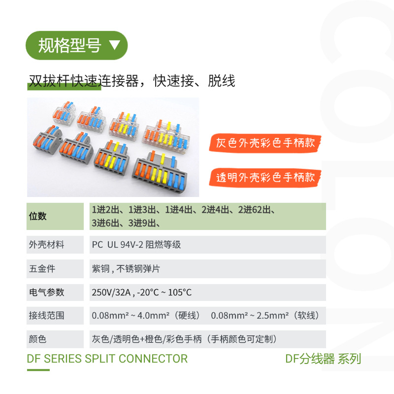 3进6出分线器彩色手柄接线端子迷你接线端子DF-63零火线
