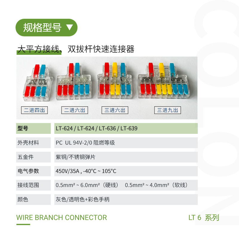 6平方接线 2进4出接线端子 透明大平方接线 LT-636