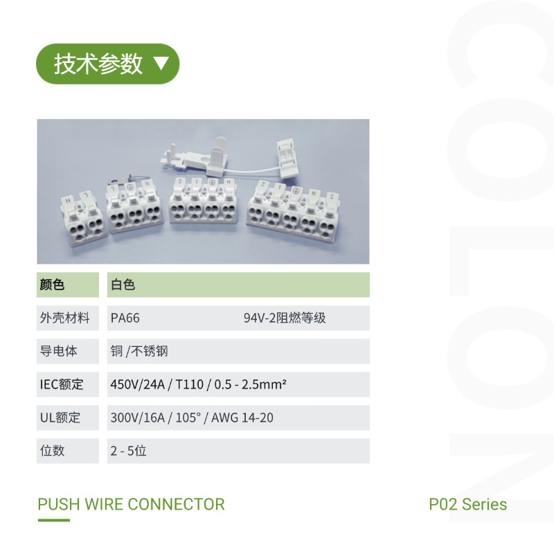 P02系列免螺丝单双按压接线端子五位快速接线端子连接器UL