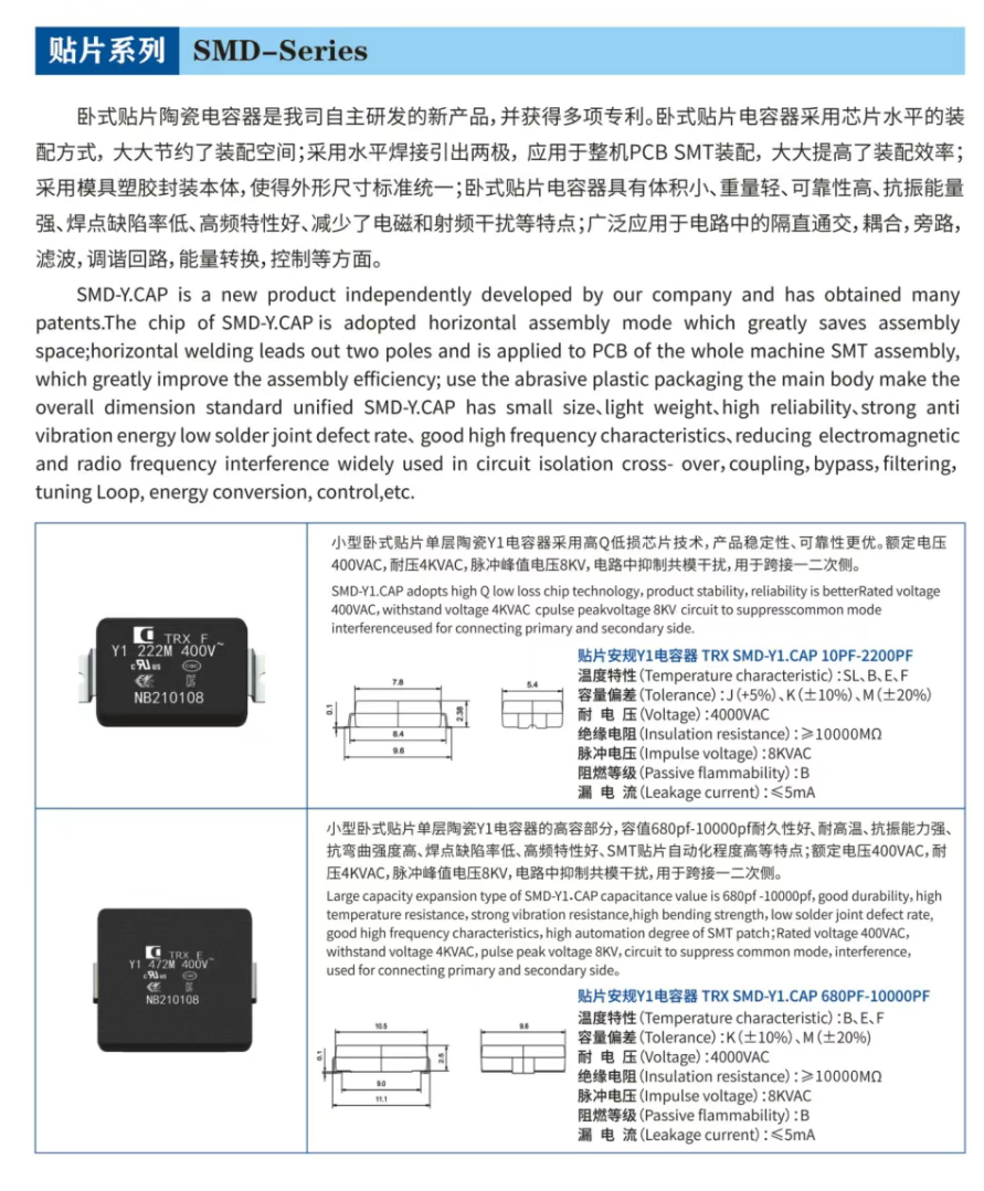 四川特锐祥科技股份有限公司是一家专业从事被动元器件产品研发与制造的高科技企业,历史可追溯到2004年成立的深圳特锐祥电子有限公司,公司于2023年成立新工厂安徽特锐祥电子科技有限公司并正式投产,经过二十年的快速发展,特锐祥已经发展成为国内同行业处于领先地位的被动元器件生产企业。旗下有自主研发产品:贴片Y电容(SMD-Y.CAP)、贴片瓷片电容(SMD-DC.CAP)、贴片热敏电阻(SMD-NTC)、插件Y电容(DIP-Y.CAP)等,产品分为车规级、工业级与消费级。TRX致力于陶瓷材料、芯片的研究,以拓展更多品类的应用,为客户提供解决方案。作为一家专业的陶瓷电容供应商,已在该领域深耕20年,在消费类电源升级迭代的过程中获得行业认可,短时间内进入上百款快充充电器供应链,成为该领域的现象级爆款,也在汽车、储能、家电、照明、工业控制、电力仪表等其他领域得到广泛认可与使用。 特锐祥(TRX)产品广泛应用于开关电源、LED电源、不间断电源、家电控制板、安防、工业控制、智能电表、储能、汽车电子等领域。自主研发与生产的专利产品SMD系列陶瓷电容器,具有体积小,性能优,自动化程度高、质量可靠性高、耐高温性好等优点,可满足SMT各种回流、波峰温度焊接工艺,具有广泛且良好的应用前景。 特锐祥(TRX)拥有现代化的标准厂房、先进的生产设备、工艺和优秀的管理团队,聚焦行业实际应用需求,用技术创新带动产品结构优化升级,保证了产品的品质和性能。建立了完善的生产与质量管理体系,通过了ISO 9001质量管理体系认证、IATF16949汽车质量管理体系认证、ISO 14001环境管理体系认证、ISO 45001职业健康安全管理体系认证、QC 08000有害物质过程管理体系认证,取得了CQC、UL、VDE、ENEC、KC等安规认证。 特锐祥-致力于成为被动元件的超越者。