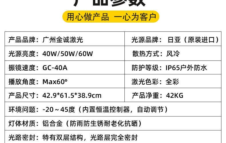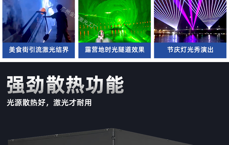 光,是瞩目的焦点,是视觉的艺术。当科技与艺术相遇,激光成为连接想象与现实的桥梁。 广州金之星激光科技有限公司,自创品牌金星激光,自2007年成立,20载专注激光领域,是一家集研发,生 产,销售,租赁,工程设计及安装调试为一体的高新技术生产企业。 我们提供从产品到项目的全链路服务和 灵活的租赁方案,让每一次精彩活动的光影呈现都变得高效而可靠。 创新,源于深厚的自主研发能力。 我们 设立独立研发部门与激光模组光学中心, 具备产品结构设计、振镜模组研发,主板内置程序开发及自主生产 能力,确保每一款产品的稳定与精准。 7000㎡现代化厂房内, 配备20台CNC机床及先进的全自动化生产线,从精密加工到整机调试,实现高精度 、高效率的标准化作业。我们采用进口核心光源,结合自主研发的封装工艺, 确保每一颗激光模组的稳定与 长寿命。严谨的工序流程与前瞻的模块化设计,让每一台设备都拥有出色的扩展性与适应性。 同时,生产过 程中即嵌入多道检测环节,为客户提供可靠、耐用、高性能的产品保障。 我们提供从1W到300W的全功率段产品,覆盖专业舞台演出、文旅工程,活动庆典与城市地标亮化等多元场景 金星激光,以完备的产品矩阵与领先的技术实力,为各类光影场景提供坚实支持。凭借领先的激光技术,我们 荣获多项行业认证,曾是美国Pangolin官方指定培训合作企业, 连续多年亮相ProLight与GetShow、西班牙 ISE、莫斯科PLS等国际展会,致力于推动激光艺术与技术的普及与发展。近二十年来,金星激光已服务海内外 超过10000+重大项目, 从助力冬奥会、全运会、大运会、残奥会、央视春晚等国家级盛典的恢弘光影, 到刘 德华、G-Dragon权志龙、Backstreet Boys、张学友、Blankpink世界巡演的精准节奏; 从VAC、ISY、IMF 音乐节十万人现场,到景区文旅与城市地标——金星激光,以专业与稳定,成为世界级演出的信赖之选。 光无止境,创意无限。未来,金星激光将继续以诚信务实之心,以创新超越之志,与您携手, 共同点亮更多万 众瞩目的现场,共筑光影未来。