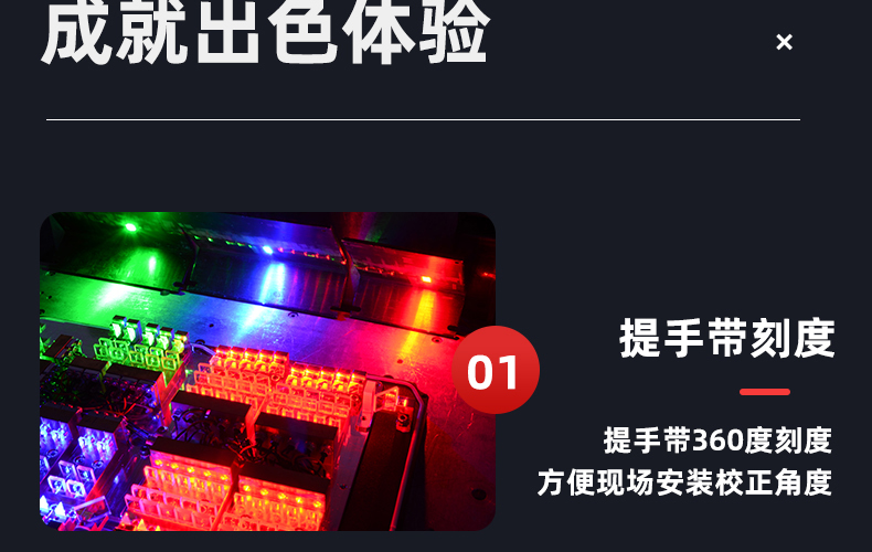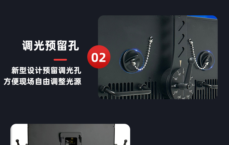• 可调性 出光方向调节、高度调整、亮度调节、光束角调节