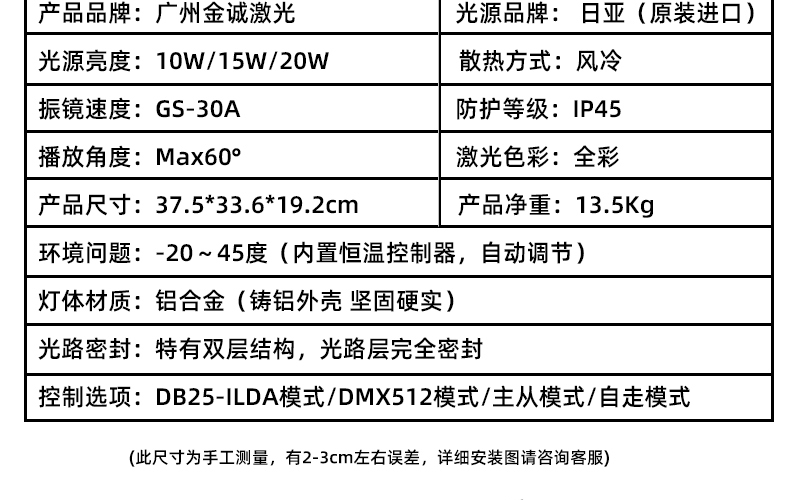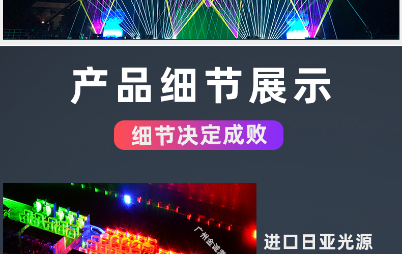光,是瞩目的焦点,是视觉的艺术。当科技与艺术相遇,激光成为连接想象与现实的桥梁。 广州金之星激光科技有限公司,自创品牌金星激光,自2007年成立,20载专注激光领域,是一家集研发,生 产,销售,租赁,工程设计及安装调试为一体的高新技术生产企业。 我们提供从产品到项目的全链路服务和 灵活的租赁方案,让每一次精彩活动的光影呈现都变得高效而可靠。 创新,源于深厚的自主研发能力。 我们 设立独立研发部门与激光模组光学中心, 具备产品结构设计、振镜模组研发,主板内置程序开发及自主生产 能力,确保每一款产品的稳定与精准。 7000㎡现代化厂房内, 配备20台CNC机床及先进的全自动化生产线,从精密加工到整机调试,实现高精度 、高效率的标准化作业。我们采用进口核心光源,结合自主研发的封装工艺, 确保每一颗激光模组的稳定与 长寿命。严谨的工序流程与前瞻的模块化设计,让每一台设备都拥有出色的扩展性与适应性。 同时,生产过 程中即嵌入多道检测环节,为客户提供可靠、耐用、高性能的产品保障。 我们提供从1W到300W的全功率段产品,覆盖专业舞台演出、文旅工程,活动庆典与城市地标亮化等多元场景 金星激光,以完备的产品矩阵与领先的技术实力,为各类光影场景提供坚实支持。凭借领先的激光技术,我们 荣获多项行业认证,曾是美国Pangolin官方指定培训合作企业, 连续多年亮相ProLight与GetShow、西班牙 ISE、莫斯科PLS等国际展会,致力于推动激光艺术与技术的普及与发展。近二十年来,金星激光已服务海内外 超过10000+重大项目, 从助力冬奥会、全运会、大运会、残奥会、央视春晚等国家级盛典的恢弘光影, 到刘 德华、G-Dragon权志龙、Backstreet Boys、张学友、Blankpink世界巡演的精准节奏; 从VAC、ISY、IMF 音乐节十万人现场,到景区文旅与城市地标——金星激光,以专业与稳定,成为世界级演出的信赖之选。 光无止境,创意无限。未来,金星激光将继续以诚信务实之心,以创新超越之志,与您携手, 共同点亮更多万 众瞩目的现场,共筑光影未来。