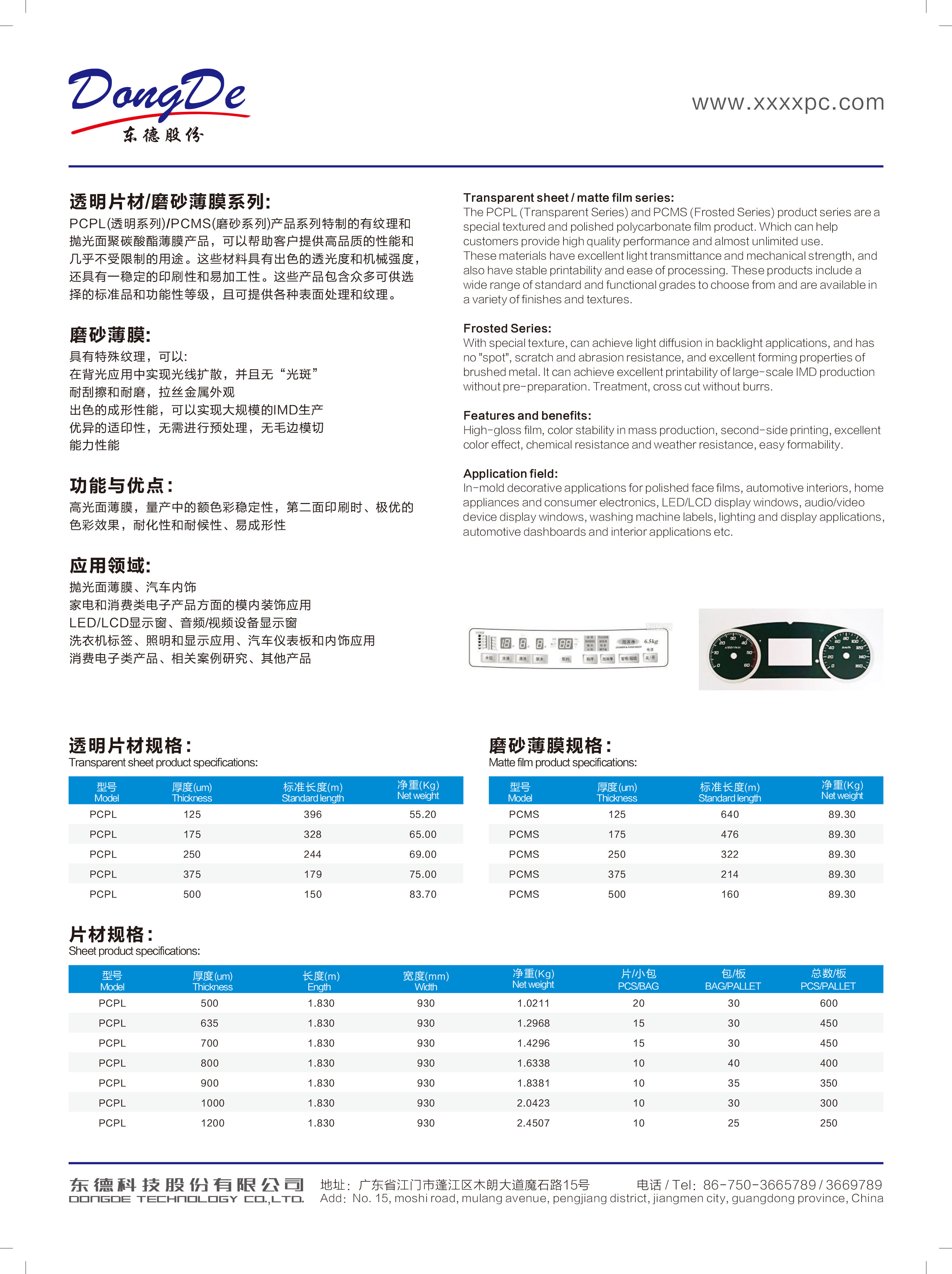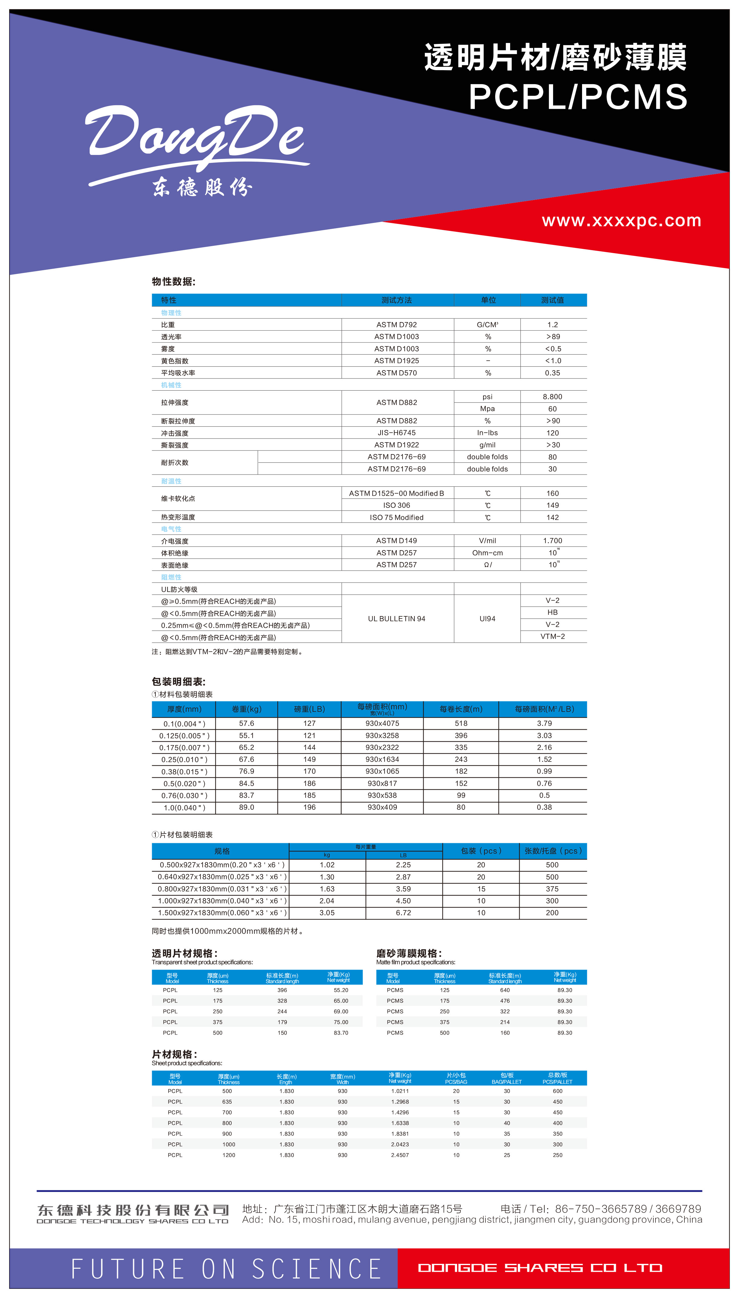 东德 透明片材/磨砂薄膜 PCPL/PCMS