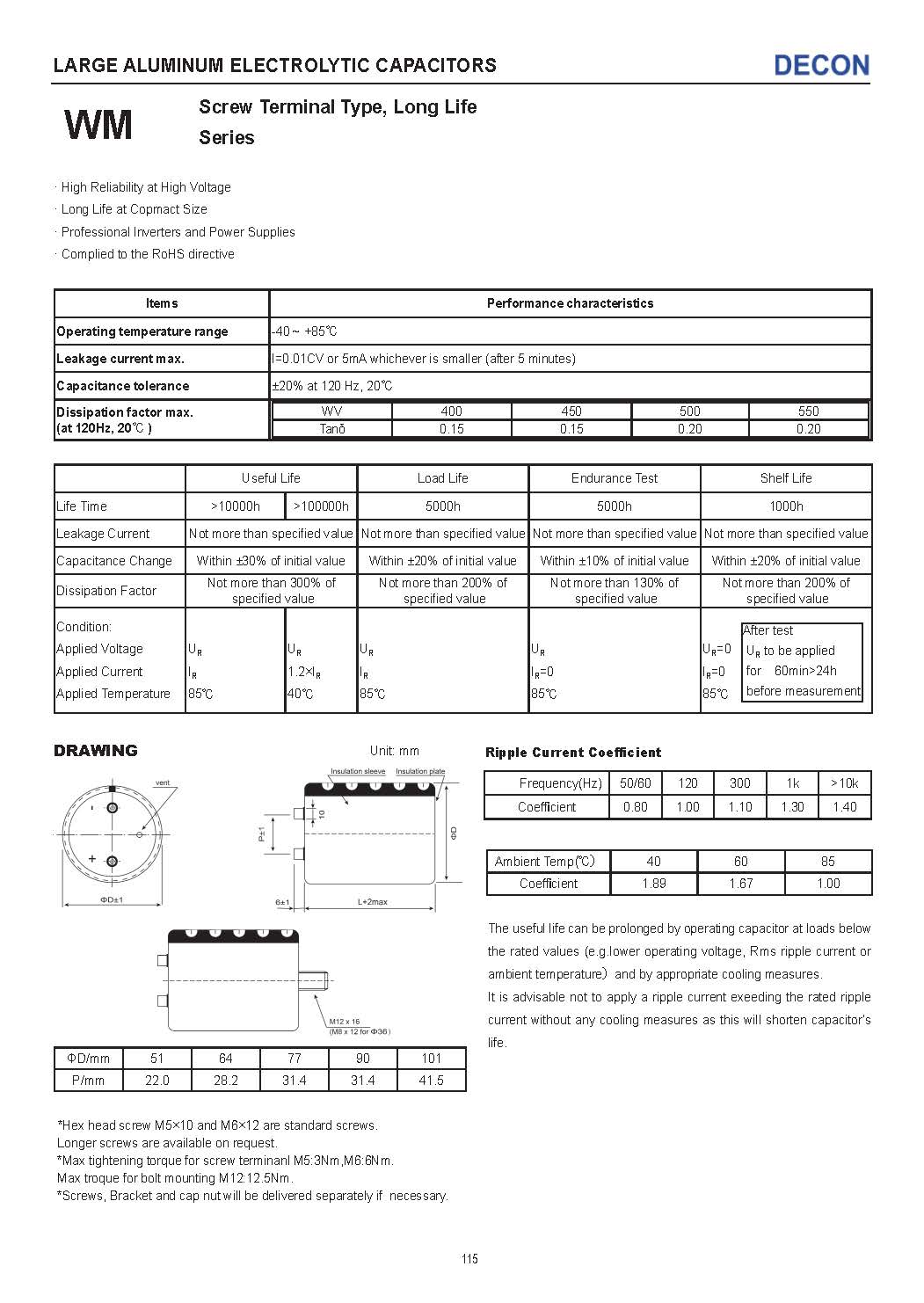WM系列——螺栓端子形铝电解电容器