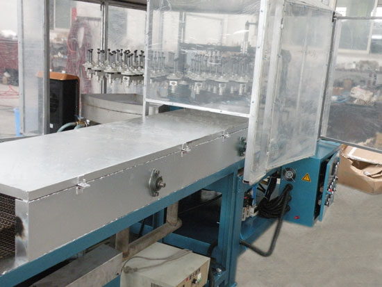本产品为公司为大批量生产LED球泡灯玻璃壳涂膜专用生产设备。产品自动化生产只需一个人上下料即可完成涂膜,干燥,自动擦粉灯工艺。