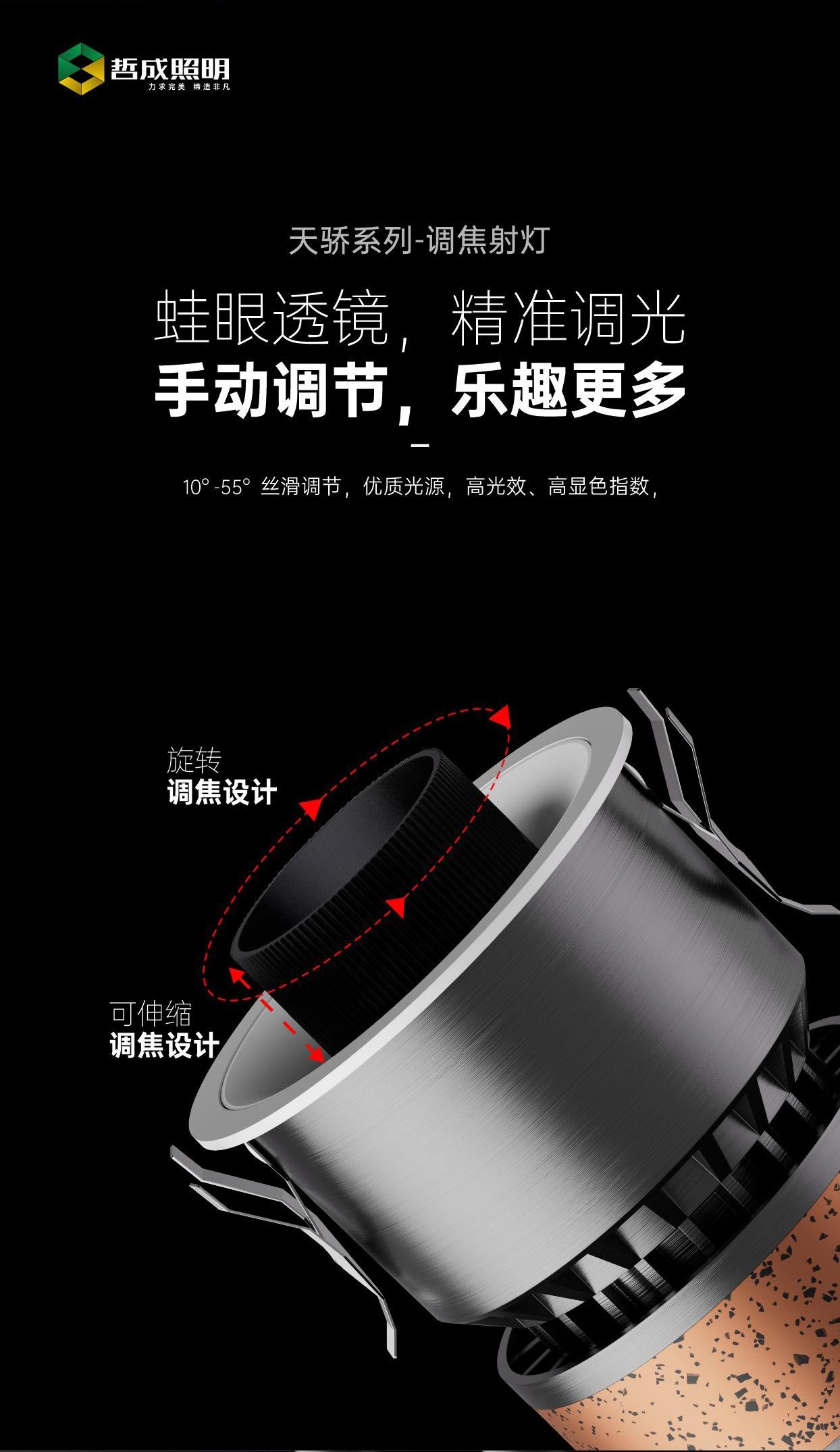江门市哲成照明科技有限公司,是一家集设计,制造销售于一体的LED商业照明企业。公司成立于2018年,经过6年的艰苦奋斗,现有员工79人,实现年产值5000万以上。公司座落于中国“侨都”江门市,位于江门国家高新技术开发区,与风景秀丽的龙溪湖公园毗邻。拥有优良的生产厂房及办公环境,公司有先进的半自动化流水生产设备,精密智能的老化设备、检测设备、实验室等,自主完成设计测试生产的全部过程。公司已导入IOS管理体系和ERP管理系统。主营:磁吸灯具,洗墙灯、筒灯、射灯、导轨灯、格栅灯、PAR光源等产品,大部分产品坚持原创,以取得各项外观专利以及实用新型专利,并持之以恒坚持自主研发。企业所有的竞争都来自于人才的竞争。我们在不断的内部培养人才和向外部引进新的人才,完善人才的竞争机制是企业长期稳定发展的基石。对待产品的品质,我们如履薄冰,认真,坚持。在企业发展的路上,我们既争朝夕,也路漫漫其修远兮。哲思无限,成就于诚。哲成照明遵循品质铸就品牌,服务传递价值的企业文化,致力于健康舒适灯光点亮万家灯火,用灯光勾勒出艺术空间,有光的地方就有回家的方向,赋予家的温暖。