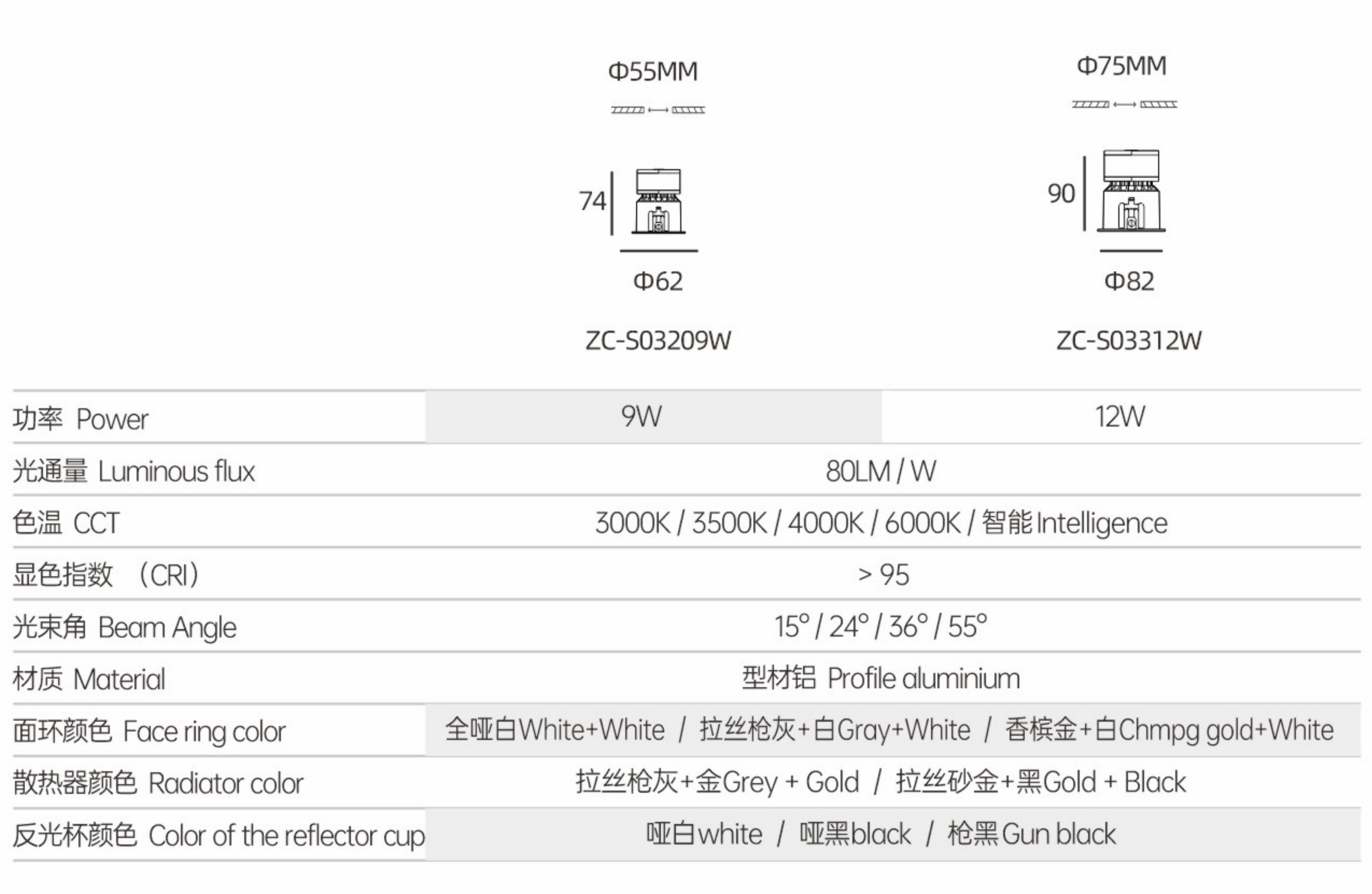• 光束角(°) 11-20°、21-40°、41-60°