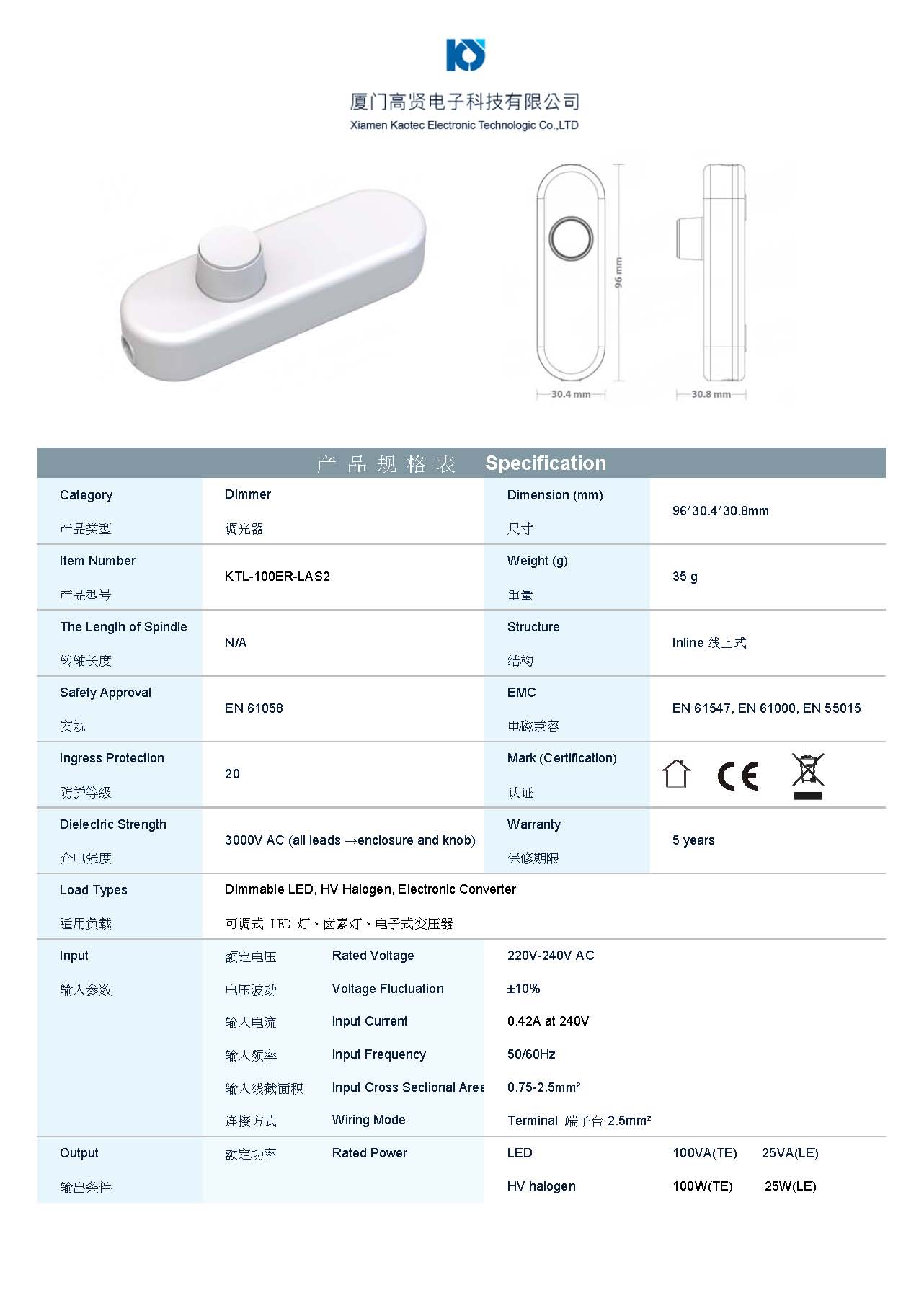 • 适用灯具 可调光LED/灯丝灯/卤素灯