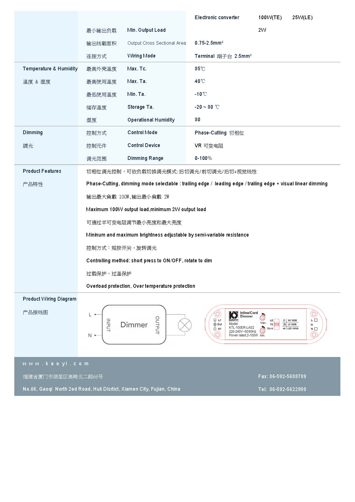 厦门高贤电子科技有限公司,于2000年成立于厦门,是高仪电子股份有限公司的子公司和重要生产和研发基地。高仪电子股份有限公司KAOYI,为专业照明电子产品研发制造公司,于1985年成立于台湾,并先后在大陆东莞、厦门、漳州设立工厂。公司致力于开发最前端的技术,开发和制造电子变压器、安定器、调光器、节能灯等照明电子产品,同时顺应照明行业发展趋势开发和制造调光器、驱动、LED灯和智能产品等。产品设计精巧,种类齐全,远销欧洲、大洋洲、北美等世界各地,为消费者提供符合当下情境最为舒适的照明体验。