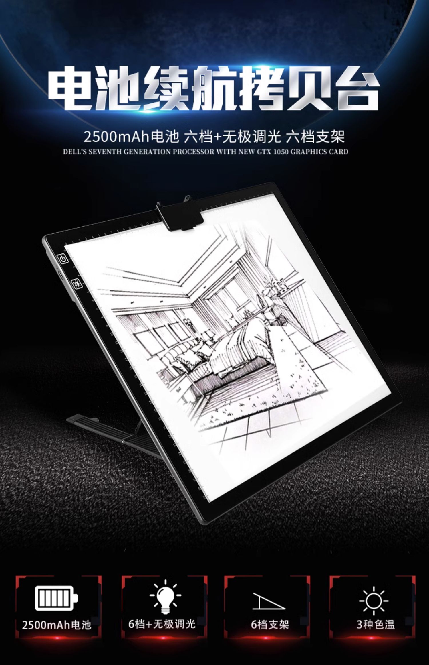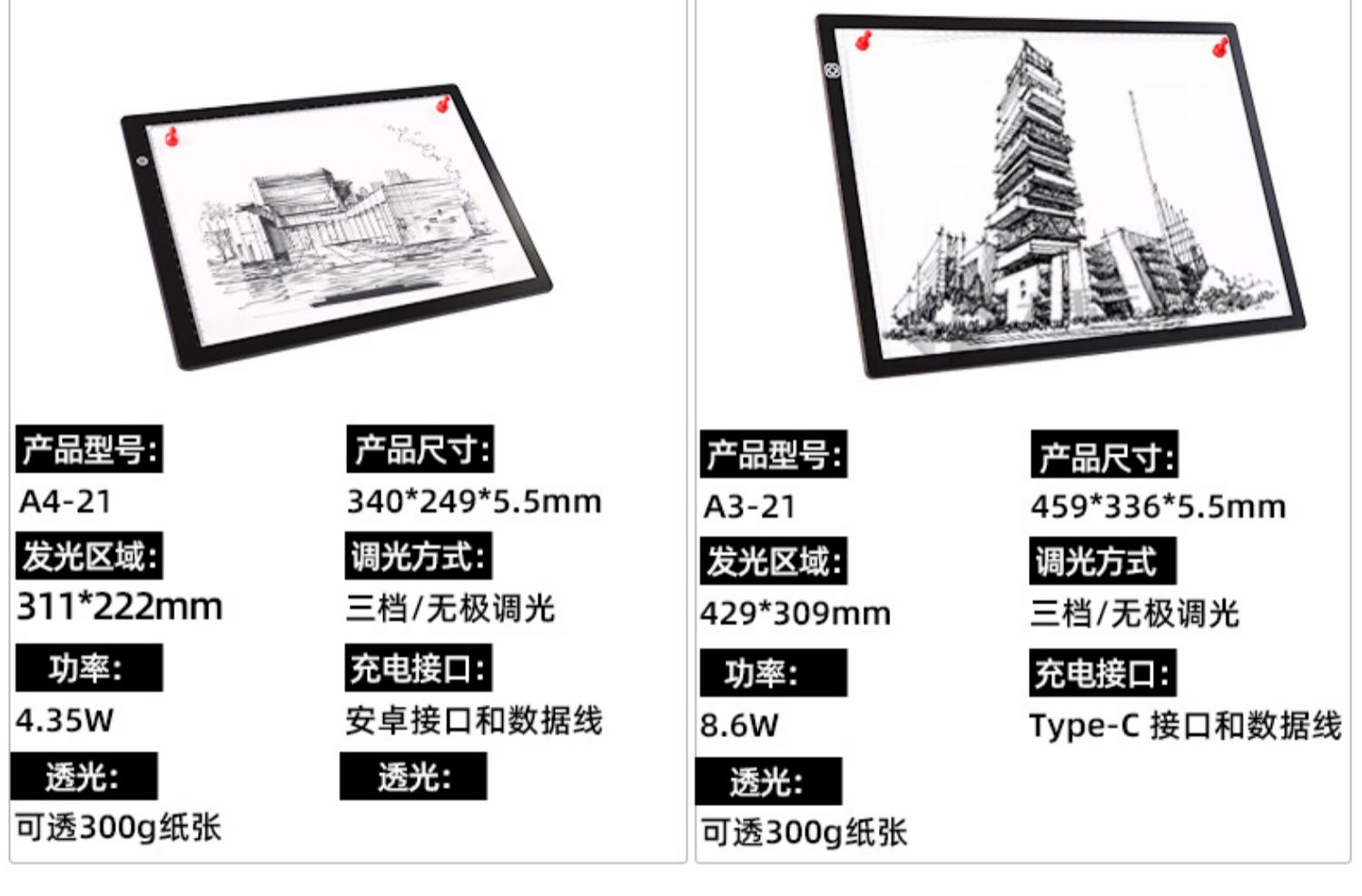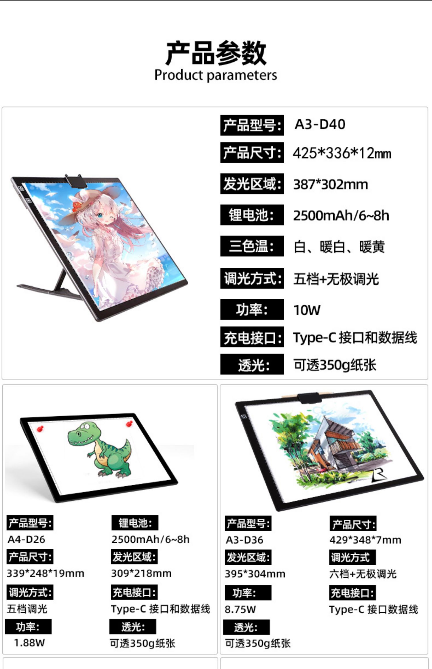 A3A4锂电池拷贝台充电续航临摹台磁性透光台书法素描发板