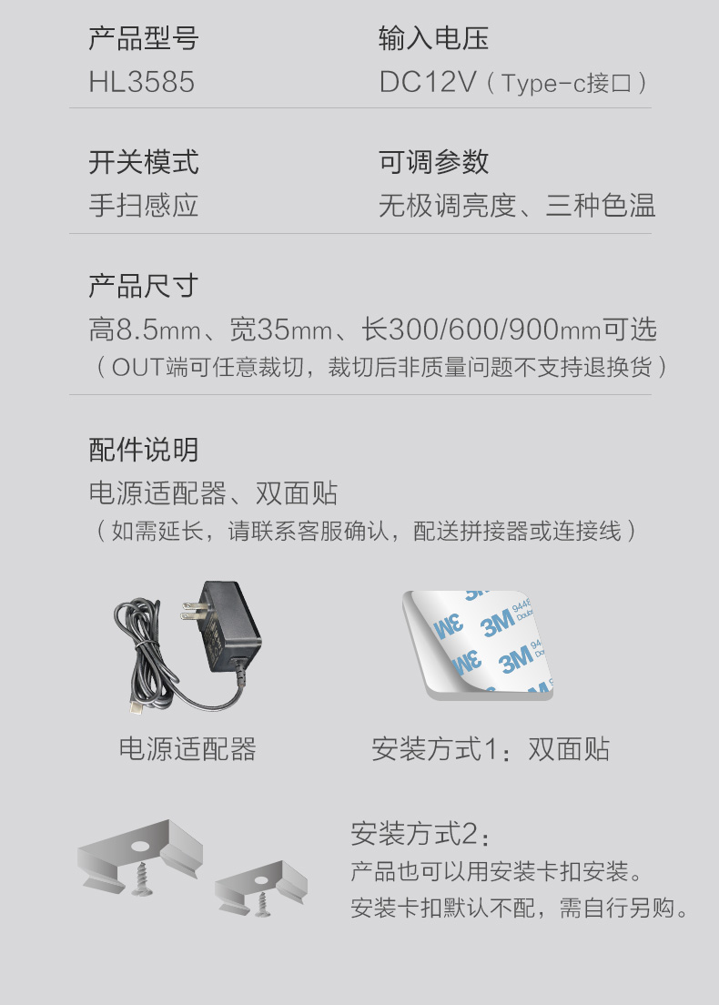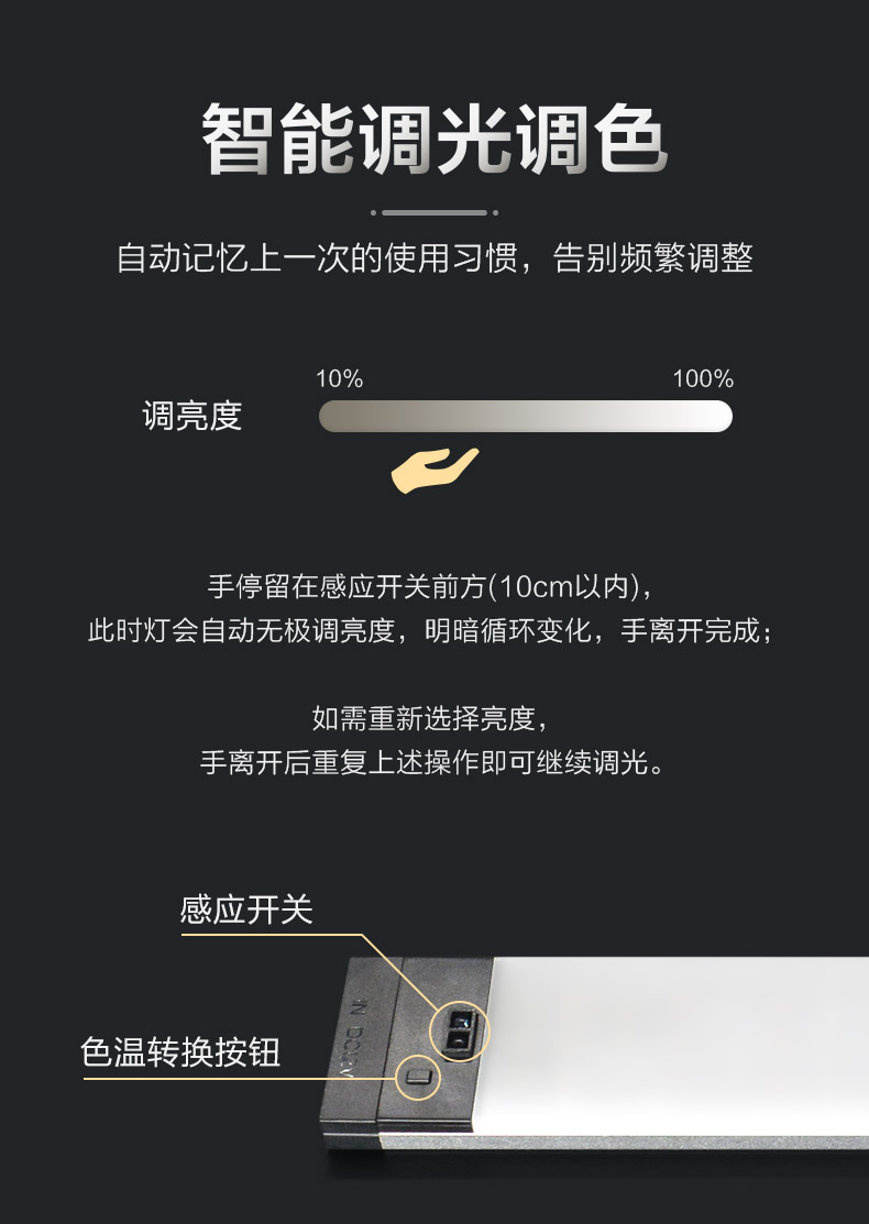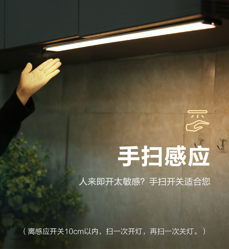 插电带线LED手扫厨房柜底感应灯 调光调色无缝对接