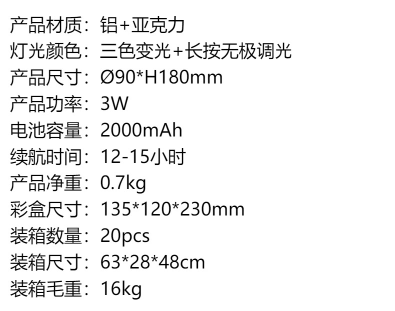 • 灯体材质 铝质