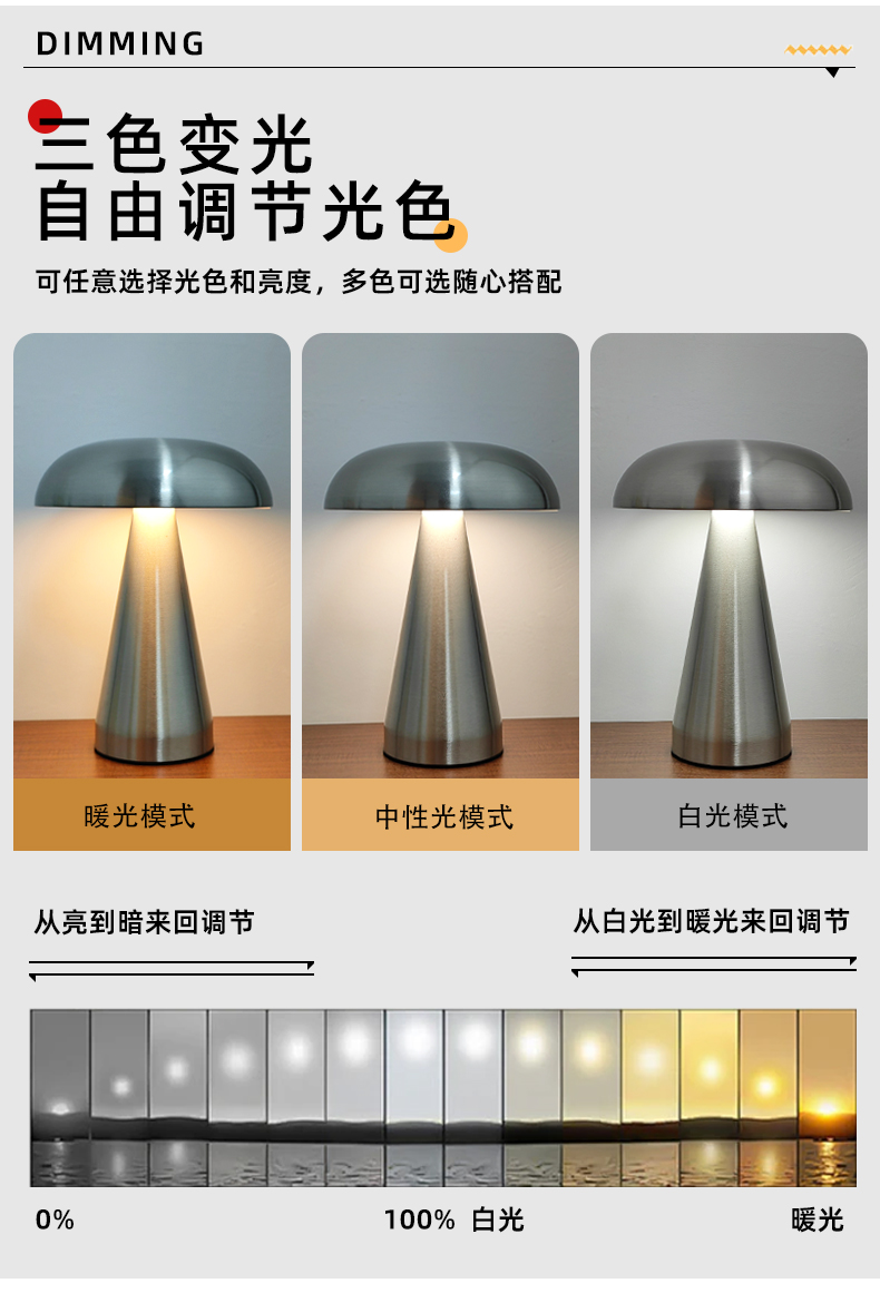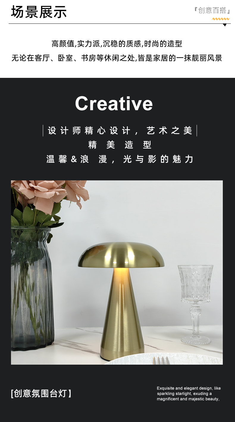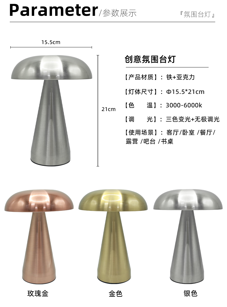 1815-境爆款金属LED蘑菇灯氛围灯酒吧餐厅USB充电小台