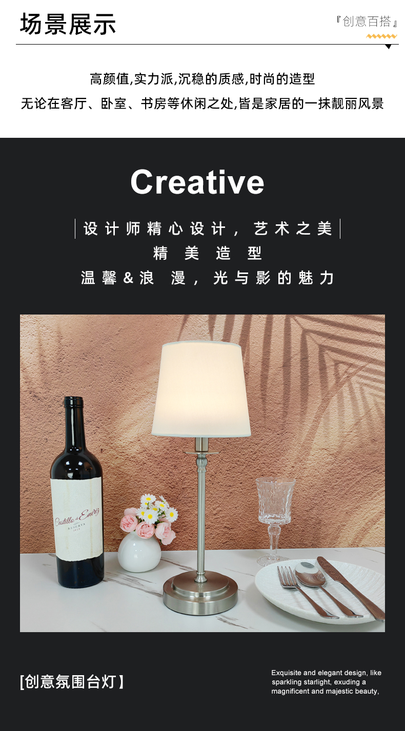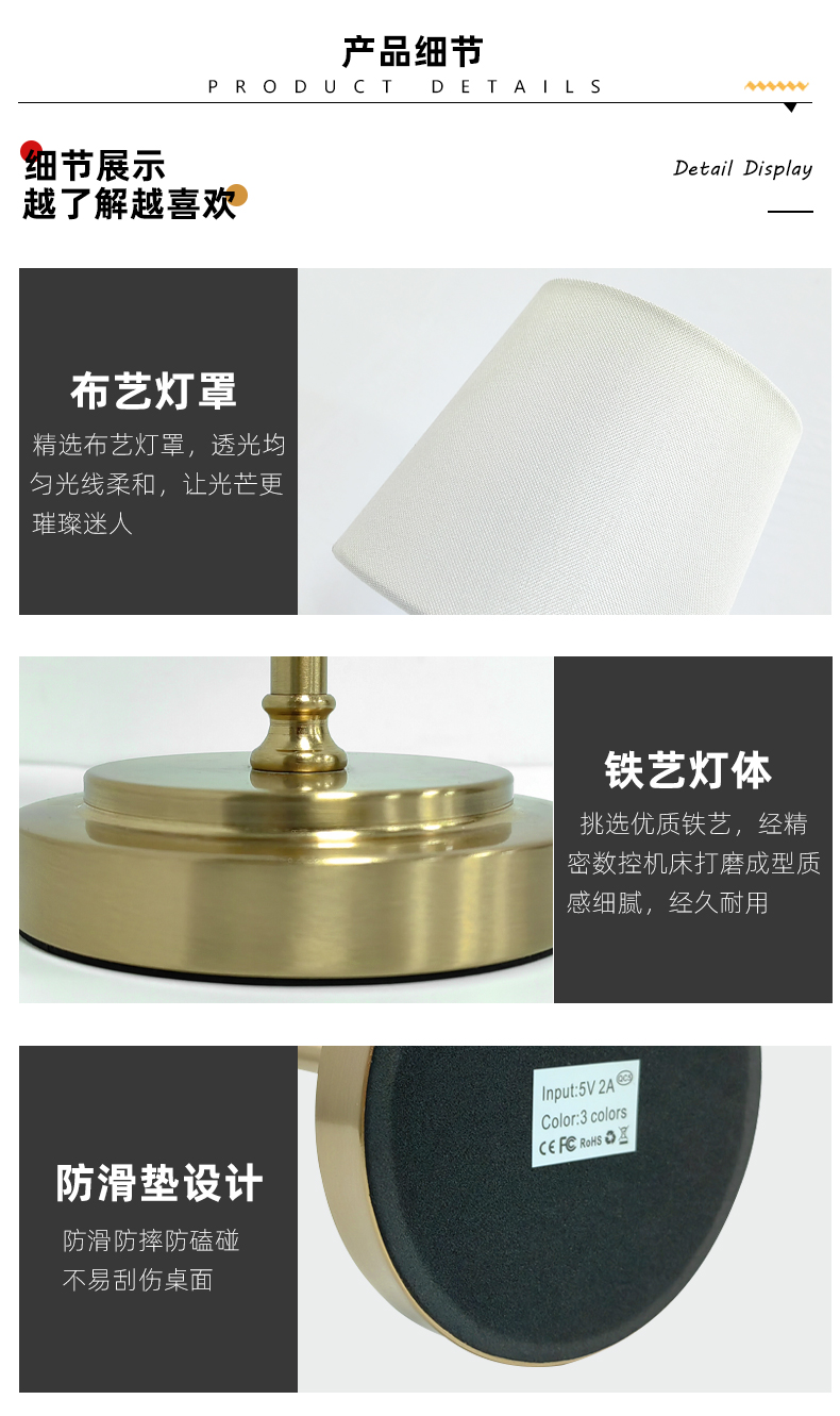 1831-跨境新款led简约布艺充电装饰台灯卧室床头小夜