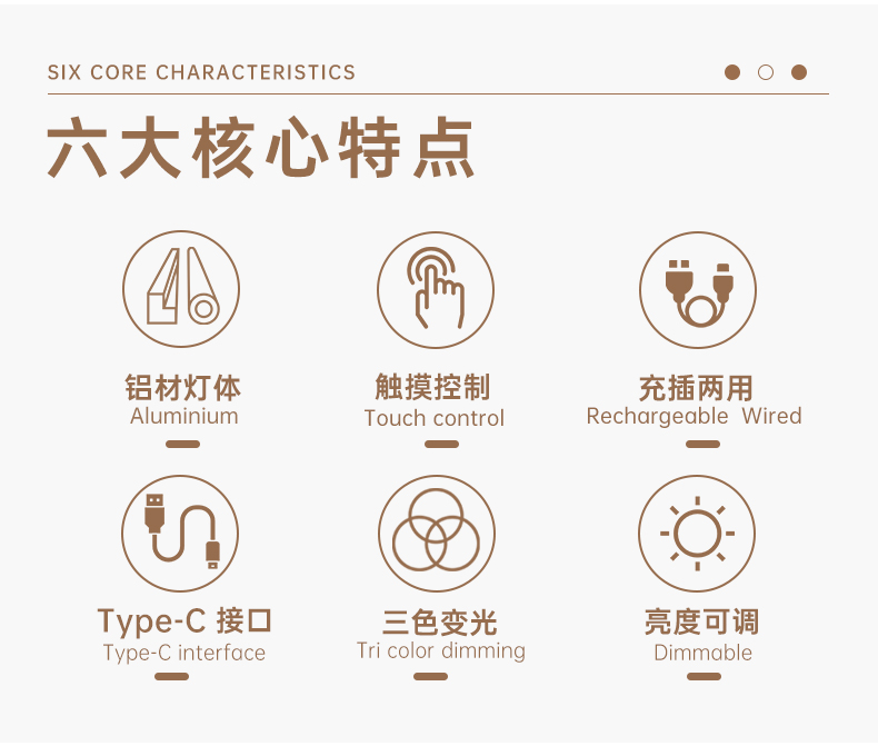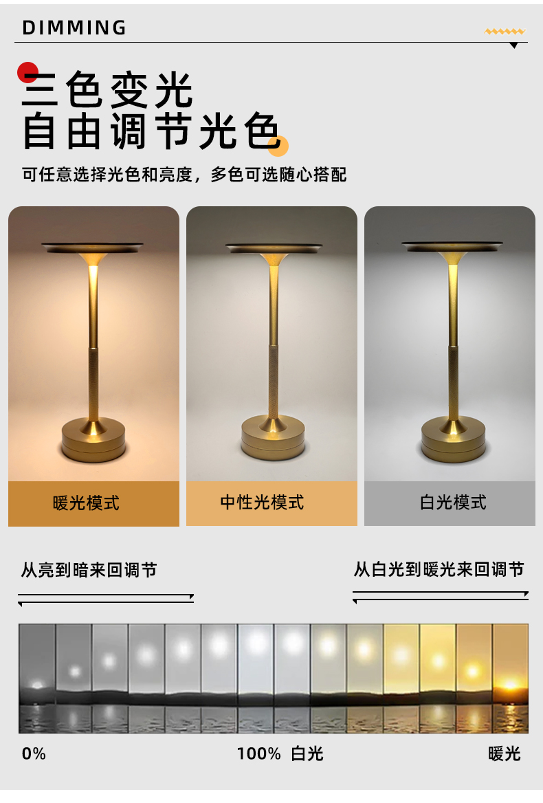 • 光源可调性 亮度调节、色温调节