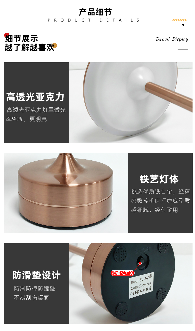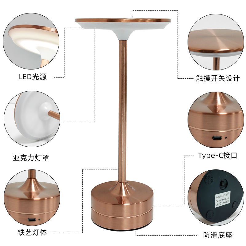 1801铁艺款-跨境创意北欧现代夜灯充电款卧室睡眠灯