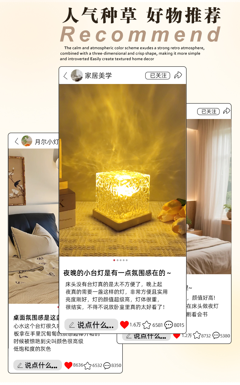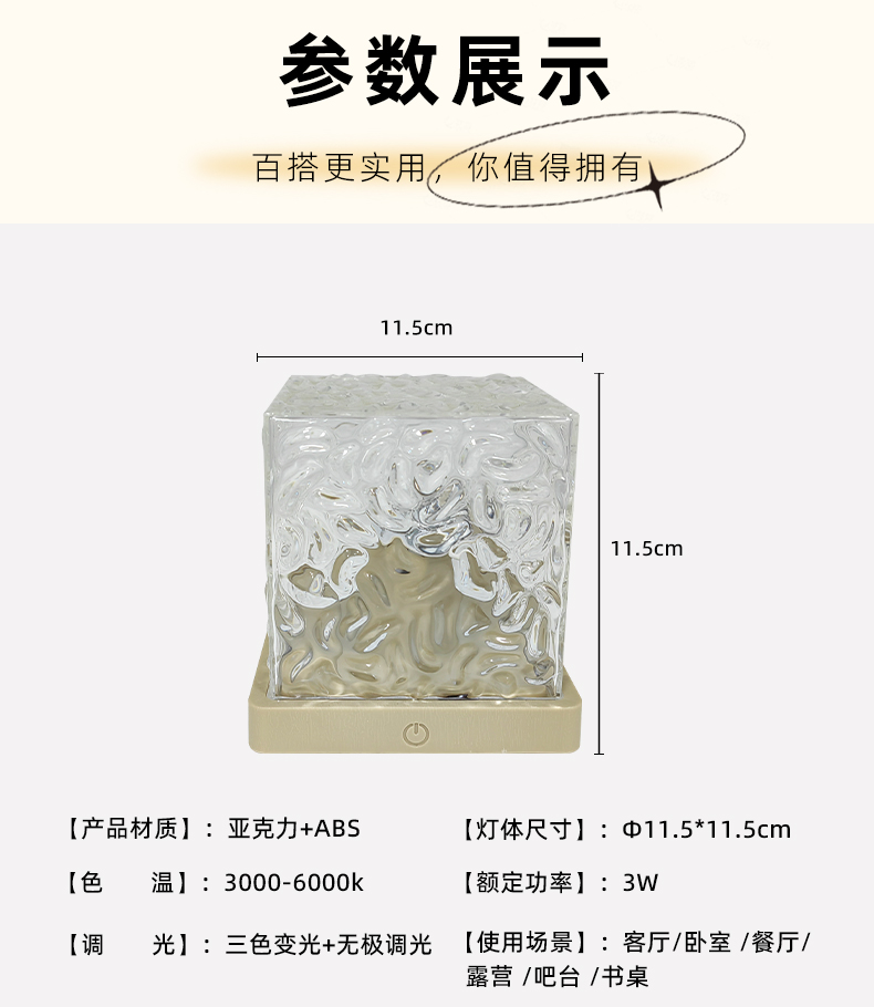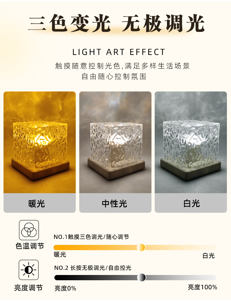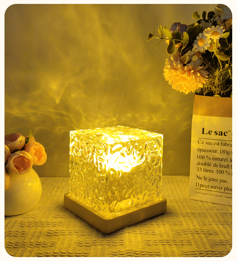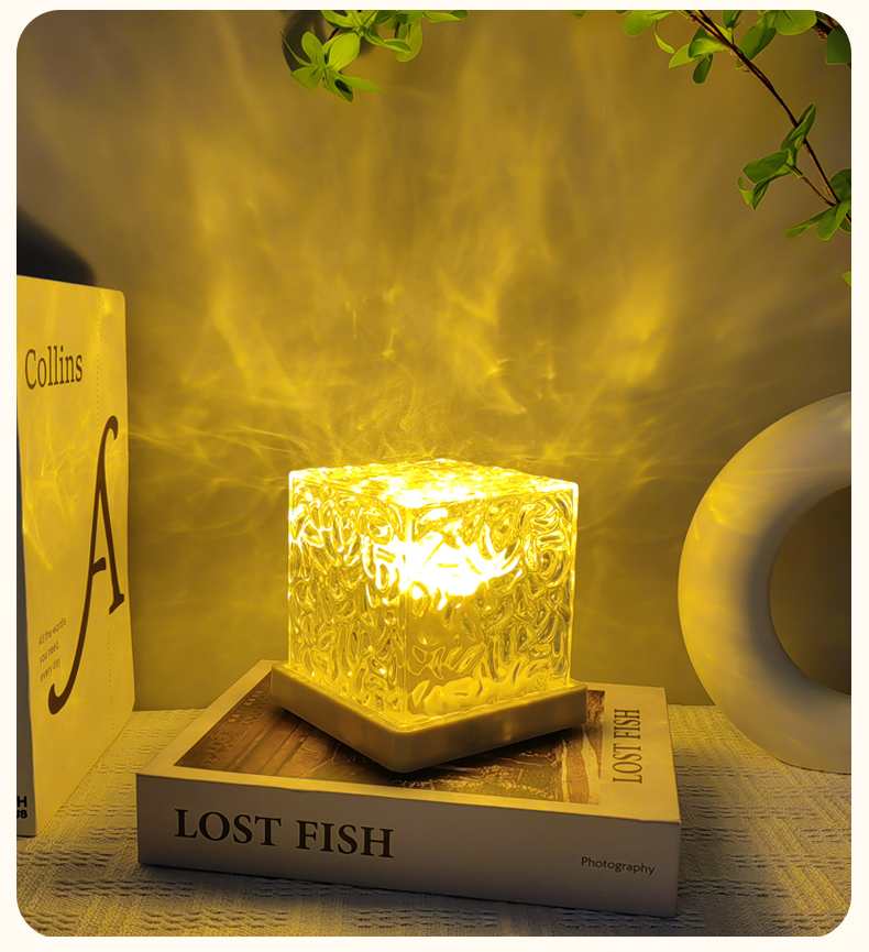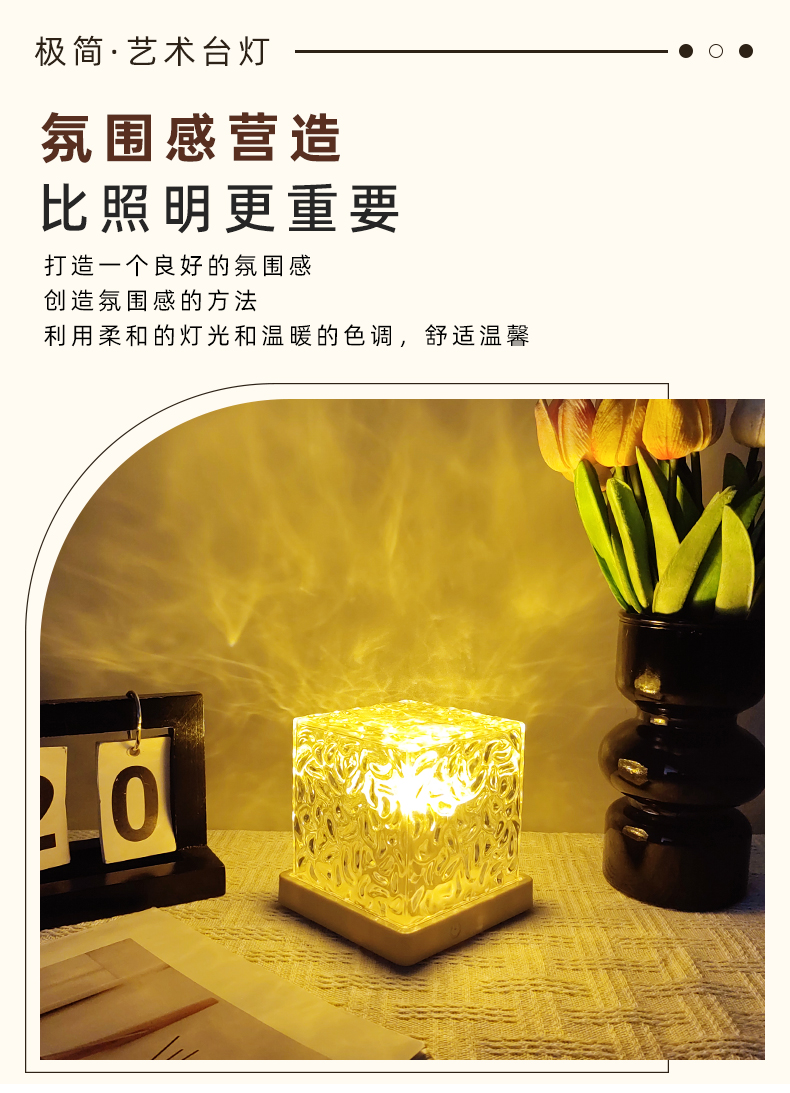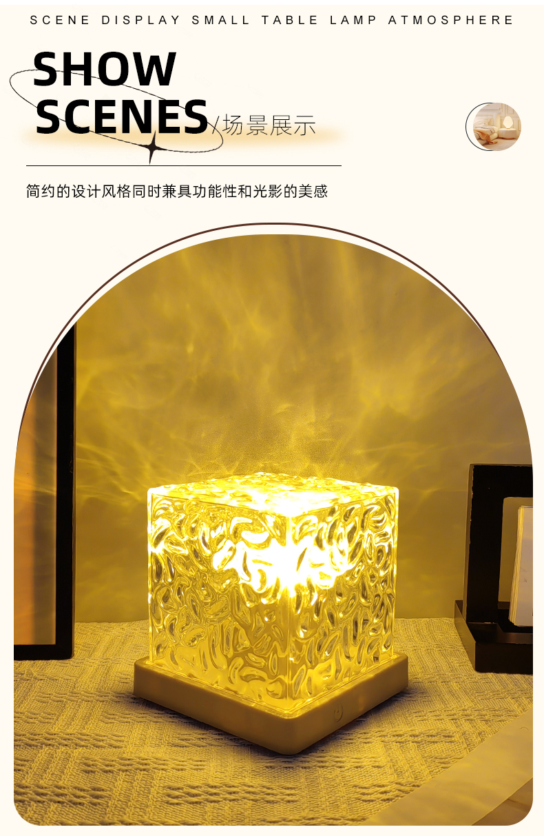 1872-跨境网红旋转水波纹小夜灯床头火焰氛围灯