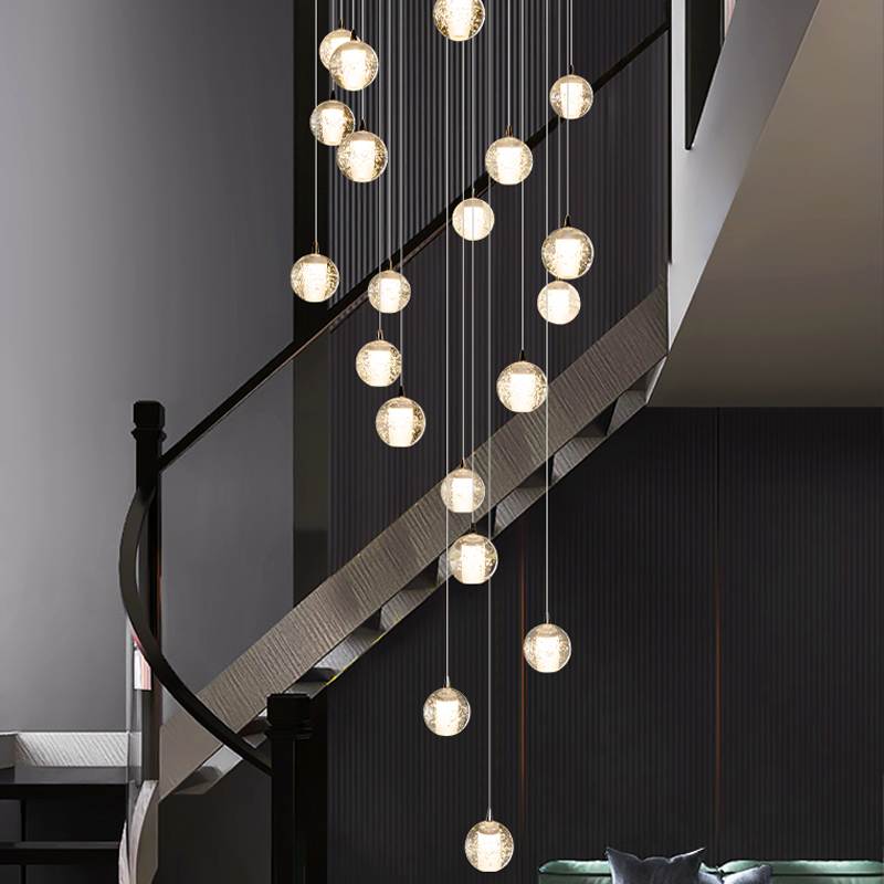 楼梯间吊灯复式楼别墅LOFT现代简约客厅创意旋转水晶球吊灯