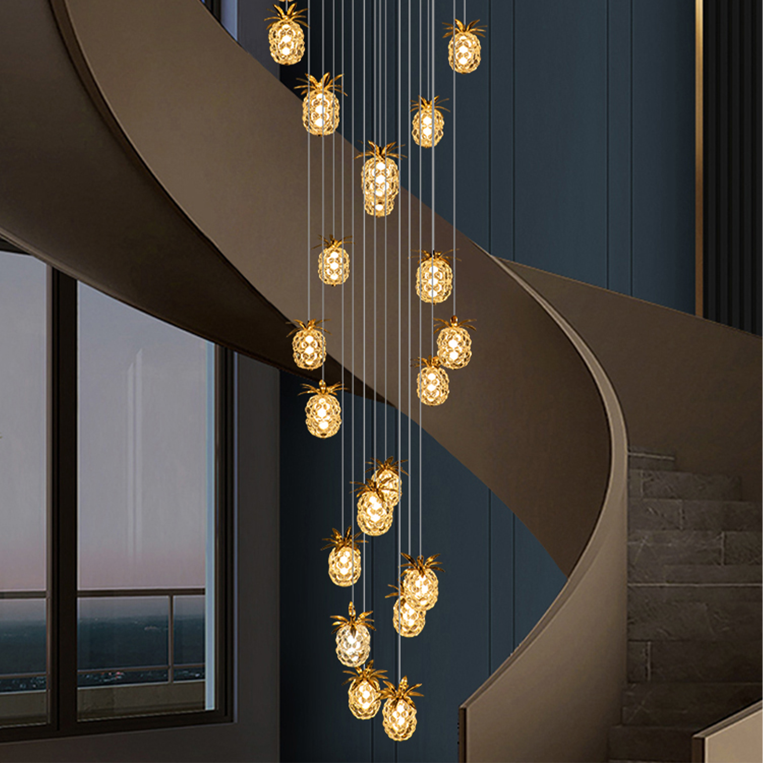 简约复式楼挑高菠萝旋转楼梯间长吊灯loft公寓别墅客厅