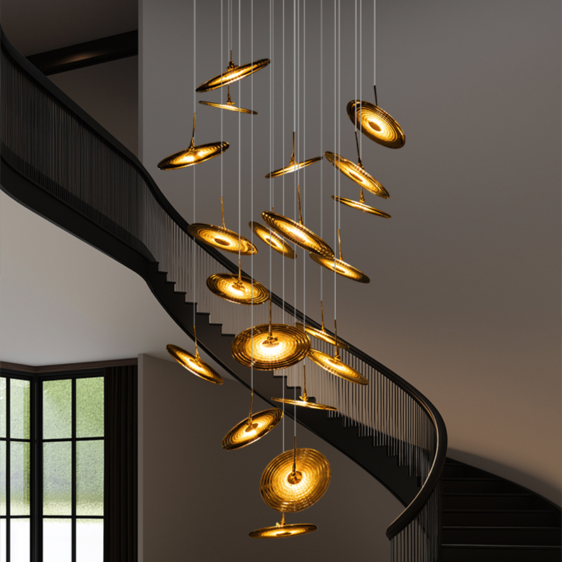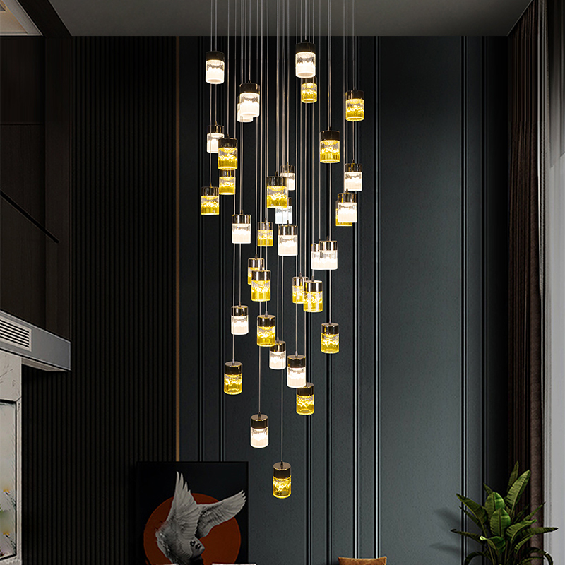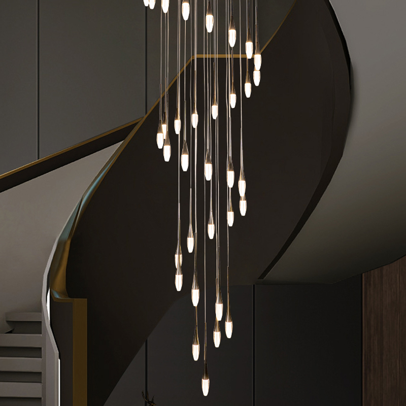 楼梯长吊灯现代简约复式楼别墅loft公寓旋转楼梯间轻奢多头
