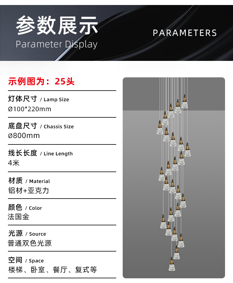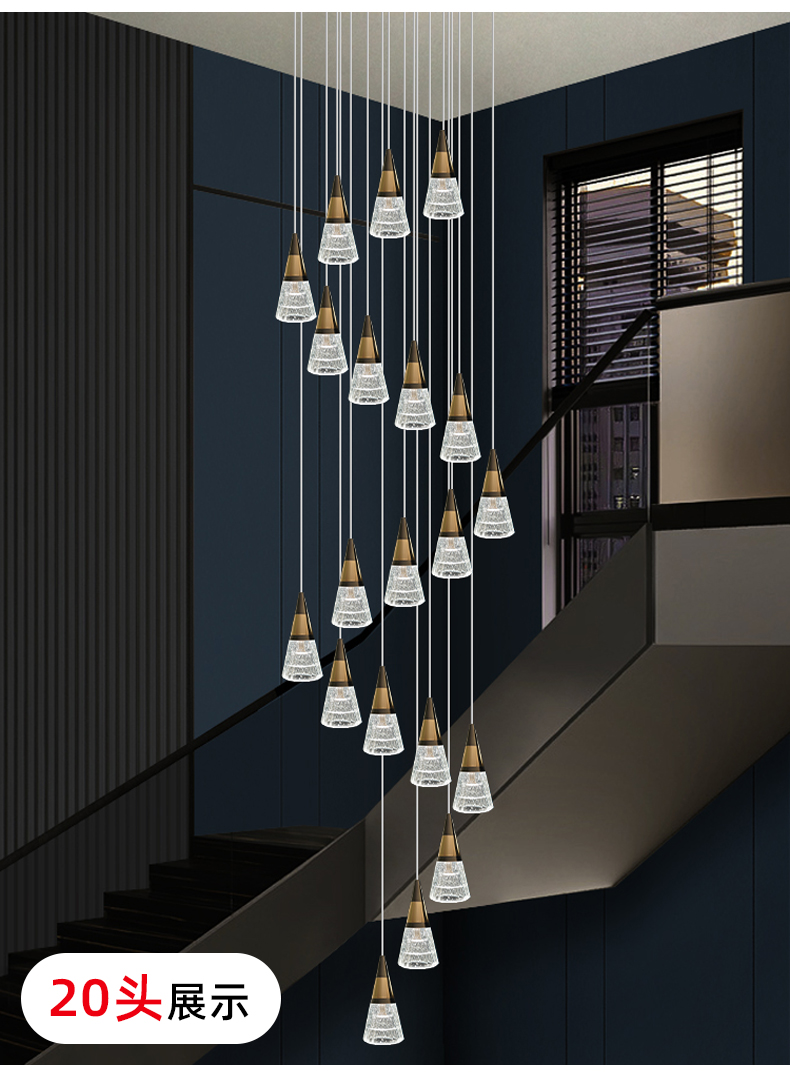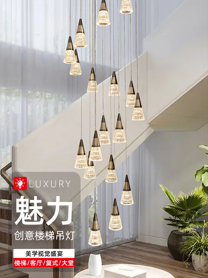 北欧楼梯吊灯现代餐厅吧台灯复式楼别墅旋转loft轻奢长吊灯