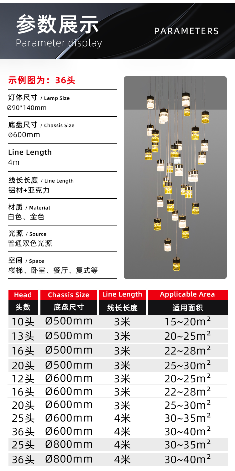 楼梯吊灯长吊灯LOFT复式北欧轻奢现代简约别墅客厅餐厅吊灯