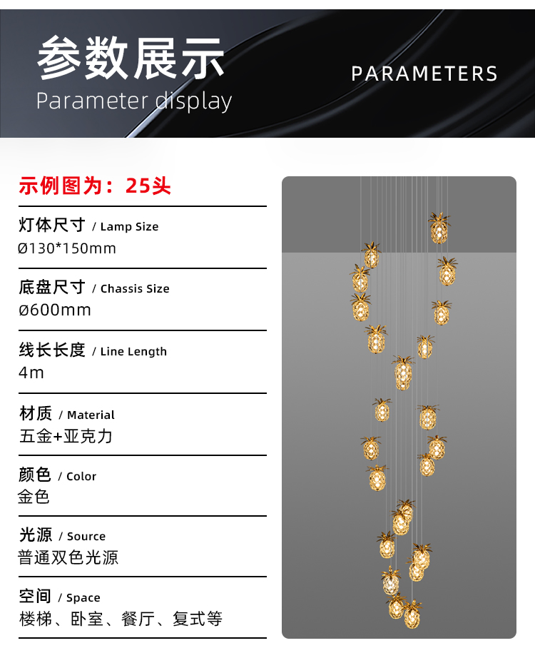 简约复式楼挑高菠萝旋转楼梯间长吊灯loft公寓别墅客厅