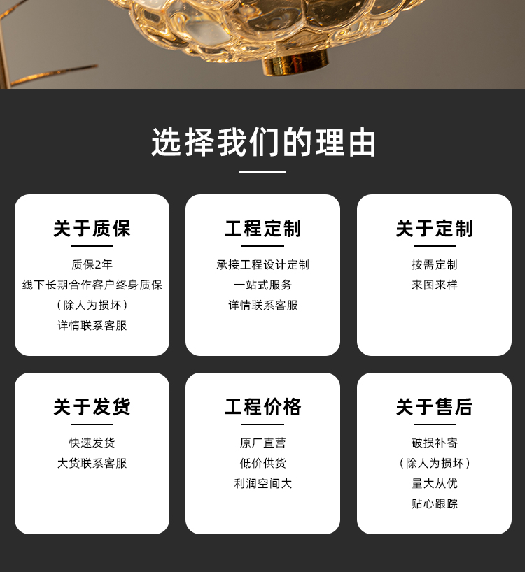 中山市灯隔热照明有限公司,位于享有“ 世界灯饰之都”美誉的广东省中山市古镇镇。是一家专业研发生产楼梯吊灯的厂家,共有五百多款产品。我们不拼价格,只做同等品质中的最优者,我们支持一件代发、一件定制。良好的服务以及无忧的售后让我们赢得了业内的肯定,未来我们将继续深化我们的产品,提高我们的服务与质量,努力成为客户的超级工厂,实现互惠共赢!