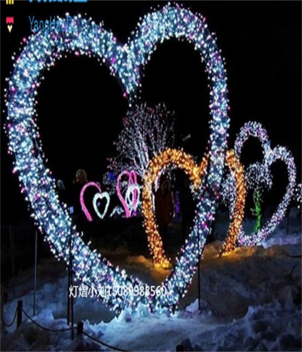 商业中心节庆美陈布置爱心灯 商业街亮化广场爱心摆件灯