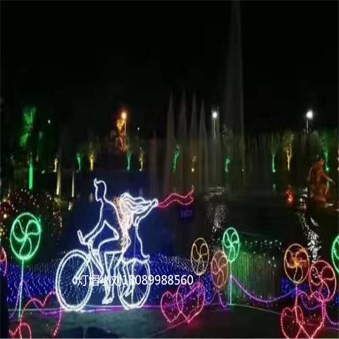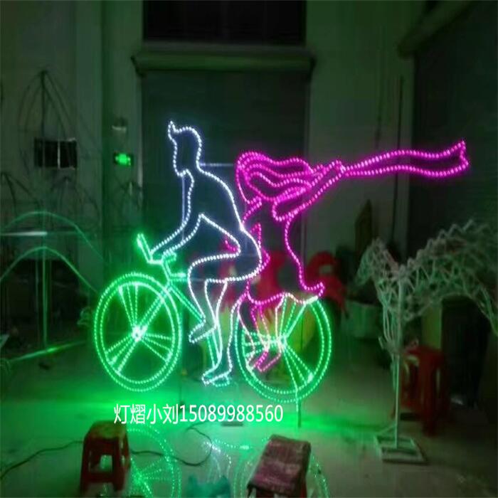 单车恋人造型灯 情侣踩单车图案灯 园林亮化单车情侣装饰灯