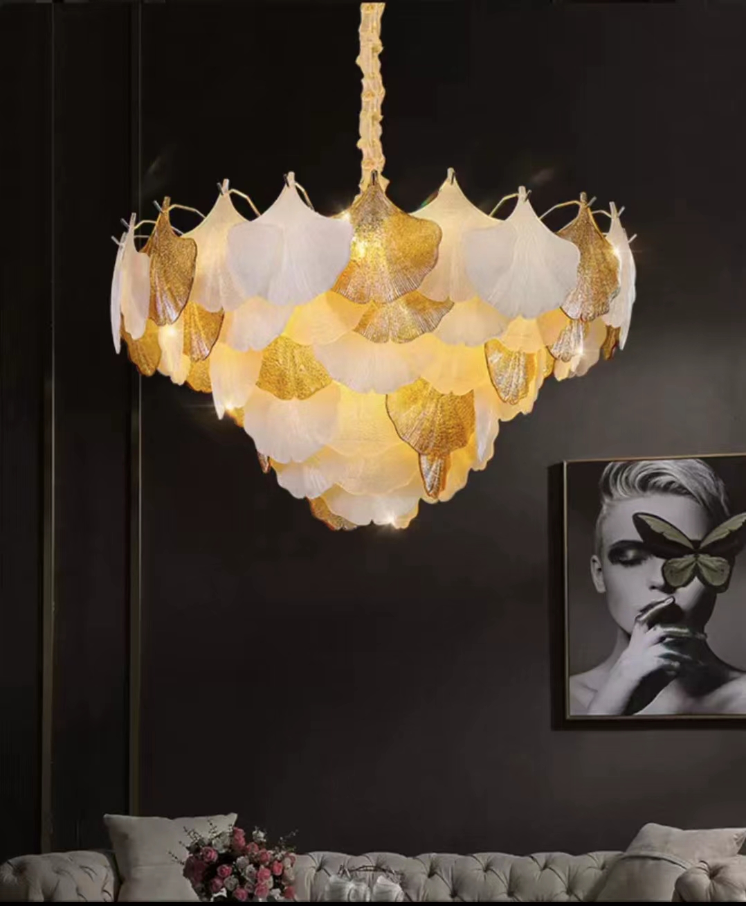 新款客厅吊灯轻奢水晶餐厅家用大气欧式简约网红银杏叶子主卧室灯