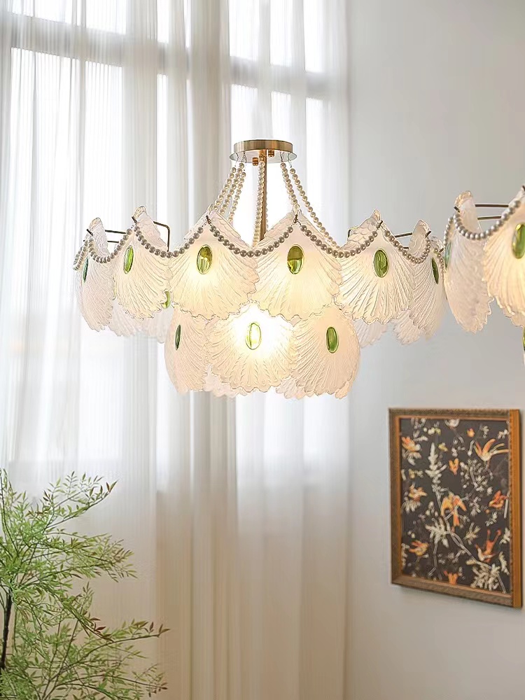 法式轻奢客厅吊灯复古珍珠羽毛玻璃现代简约卧室餐厅浪漫网红灯具