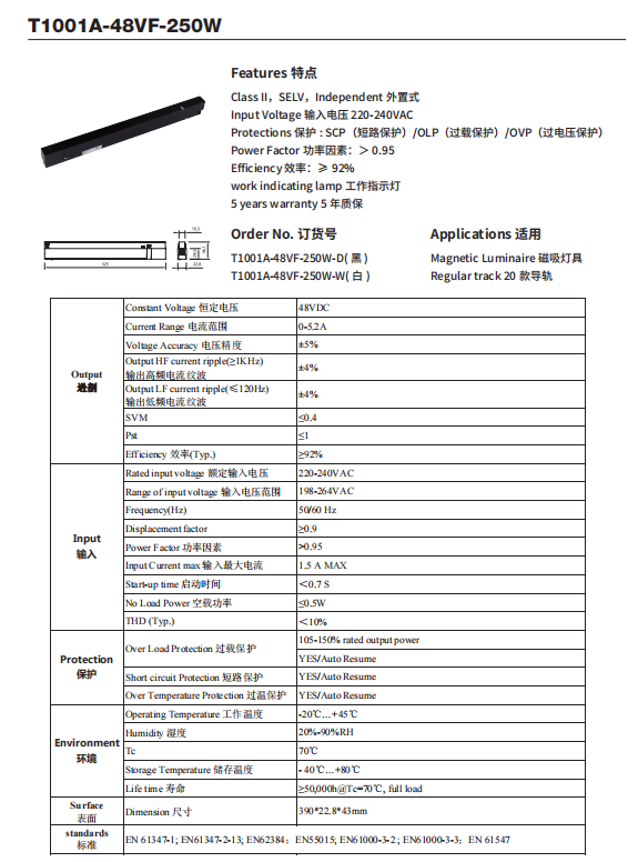 • 输出电压 48VDC
