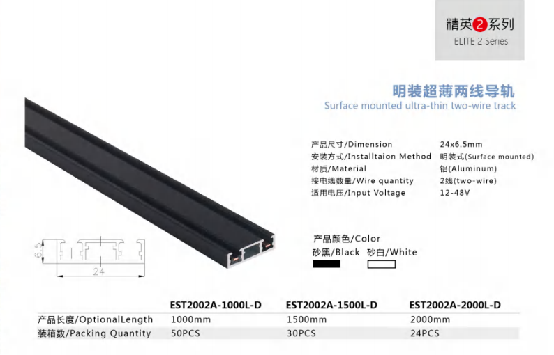 EST2002A 明装导轨 超薄系列磁吸导轨