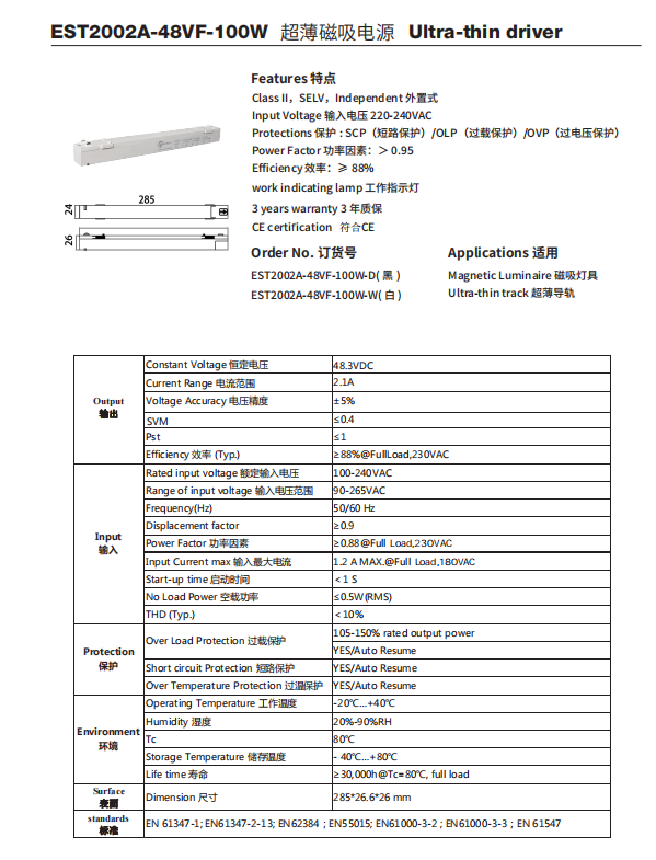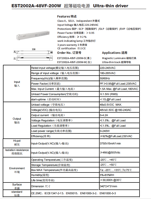 EST2002A-48VF 电源 超薄系列电源
