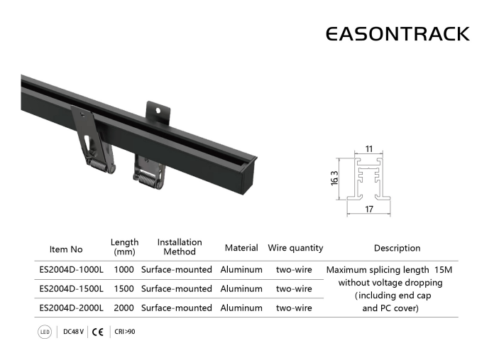 ES2004D 暗装带弹簧夹 超窄磁吸导轨
