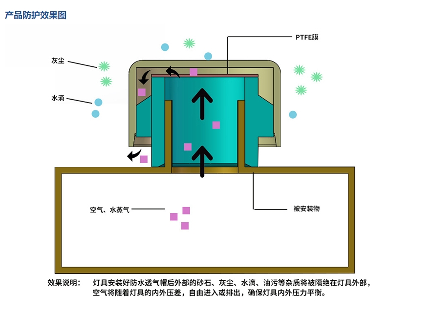 灯具透气管孔切勿过长,防止管孔戳伤防水透气膜。