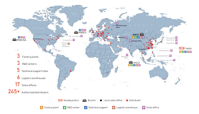 明纬企业股份有限公司(以下简称“明纬企业”)成立于1982年,是全球少数以标准品电源供应器为主业的专业制造商,产品广泛应用于工控、资通讯、照明、医疗、安防、交通等产业,是全球标准电源领域的领航者。为了满足产能需求并提高产品竞争力和提高服务质量及效率,明纬企业在中国广州(包含深圳办事处、成都办事处) 、苏州(包含北京办事处) 设立有分公司及生产工厂作为生产制造及销售据点,并在美国加州、欧洲荷兰、印度班加罗尔以及俄罗斯、南韩、日本、马来西亚设有当地办事处以提供更便捷的客户服务。
