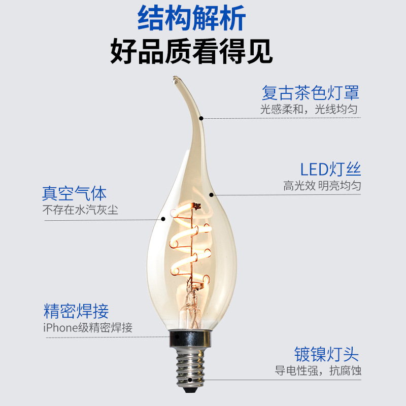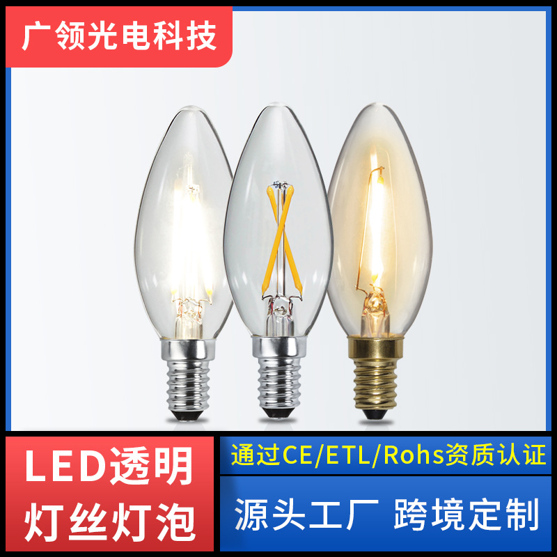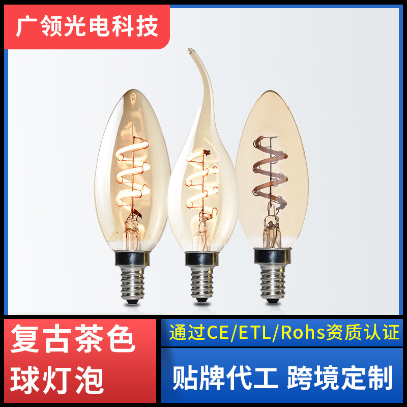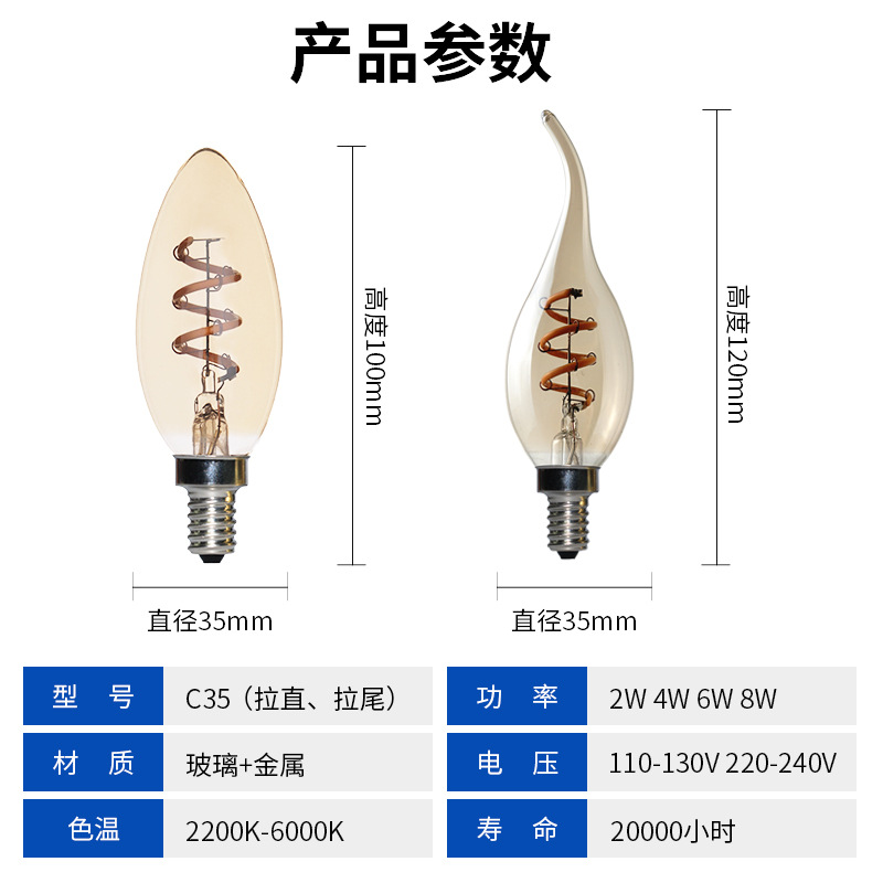 厂家生产C35拉尾暖色灯丝灯2700k e27螺口柔性灯丝双