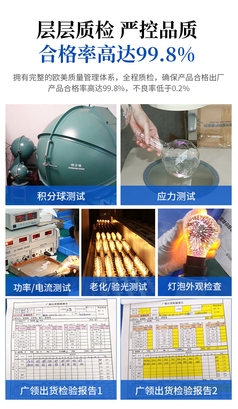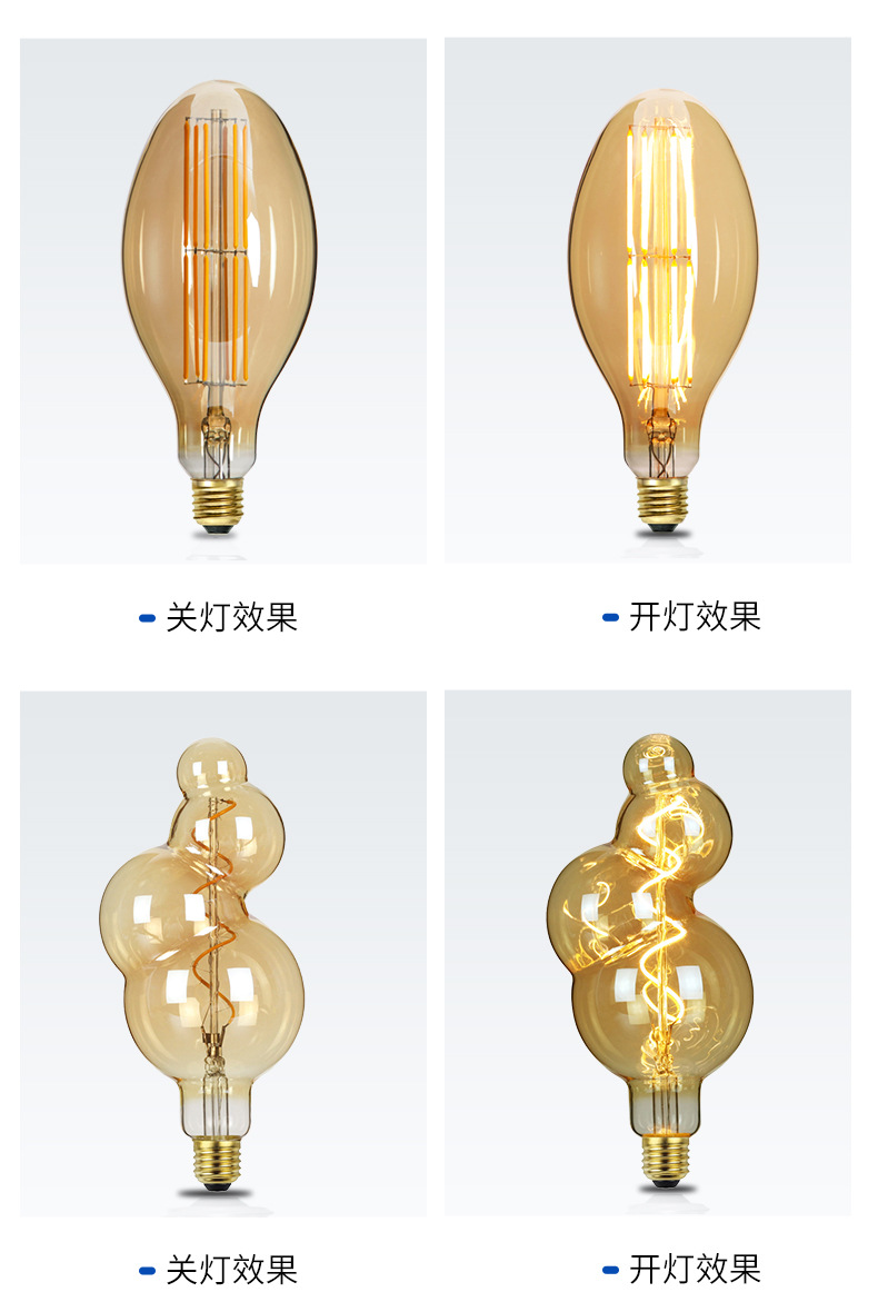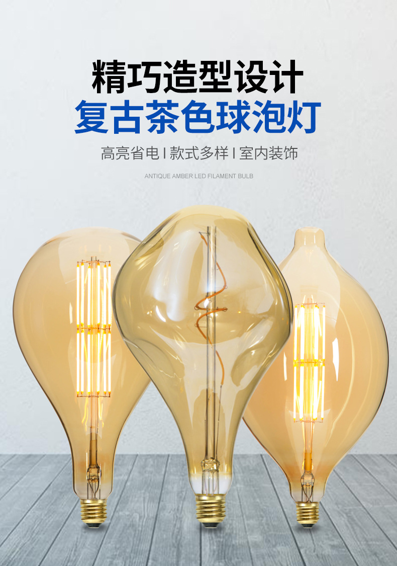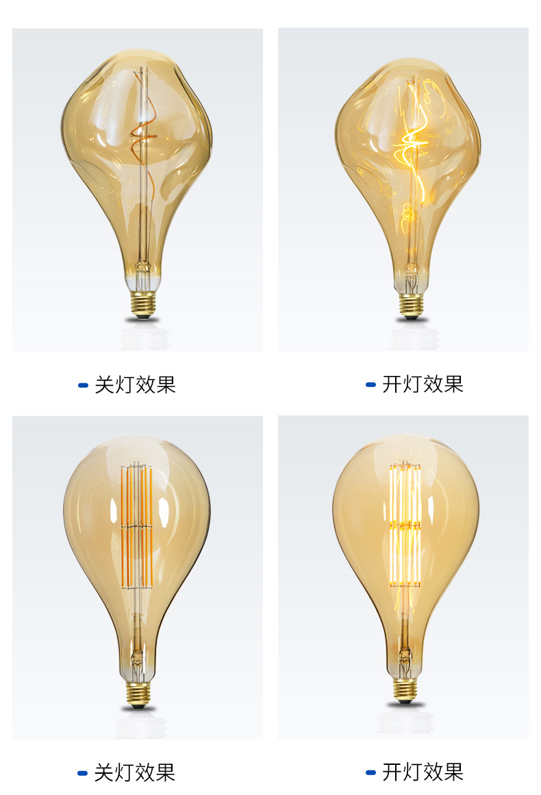 本工厂专业生产LED真空电镀灯泡、LED装饰灯丝灯、爱迪生复古、异形灯泡,可开模定制异形玻璃,卡通图案Logo 灯片。掌握了真空镀膜、封装、驱动、结构、整灯等各环节核心技术。 擅长表面颜色处理,真空电镀,喷漆等多种外观的的灯泡如茶色、烟灰色、内磨砂白,内涂白,艺术彩绘,半镀铜,镀金、银以及渐变色等。 本公司拥有进出口经营权,可供出口OEM/ODM,来图打样以及颜色处理、灯泡灯印、灯头绞字和激光打标等。