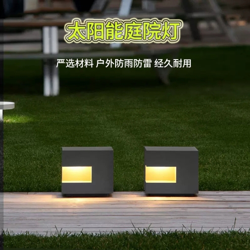 太阳能庭院柱头灯室外别墅花园景观灯防水草坪灯方形不锈钢庭院灯