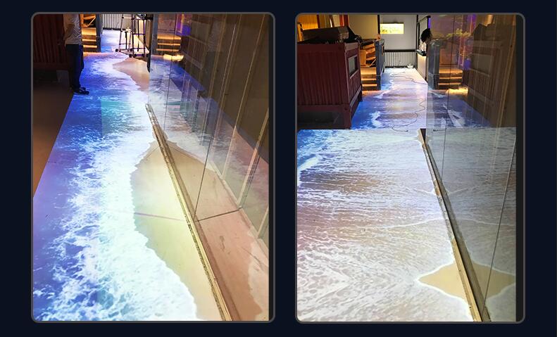 该系统可以让消费者忍不住走进各种好玩的画面里,参与互动,释放的热情!它有水波纹、翻转、碰撞、擦除、避让、跟随等多种表现形式。不仅可以满足观赏效果,还能跟着你的动作变化。各种特效影像在脚下绽放,这是一种多么奇特的体验!