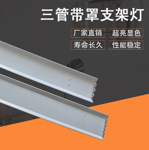 三管带罩支架灯 T8双管带罩支架 三排灯管支架1.2米