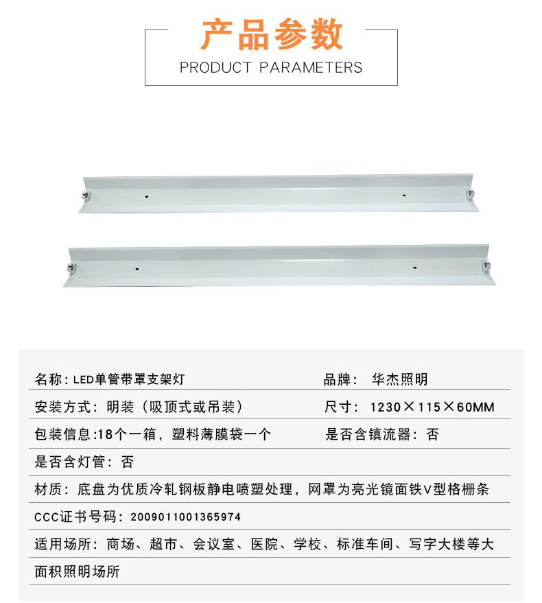T8单管带罩日光灯荧光灯支架灯 厂家供应led灯管支架灯