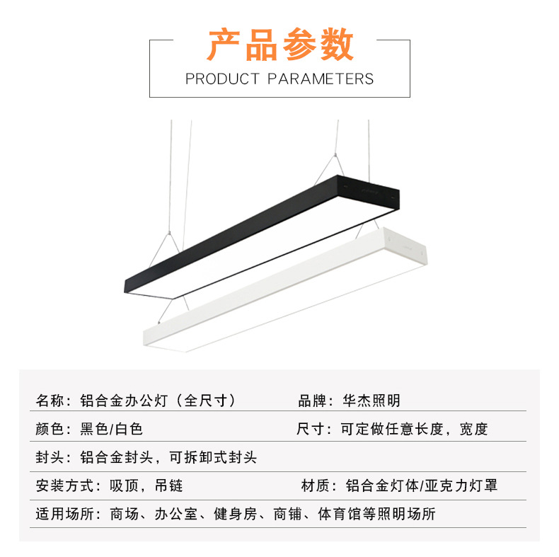 厂家办公室灯具led铝合金全尺寸办公灯长条灯办公灯写字楼吊灯