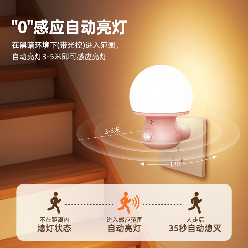 智能led插电人体感应夜灯过道起夜照明灯