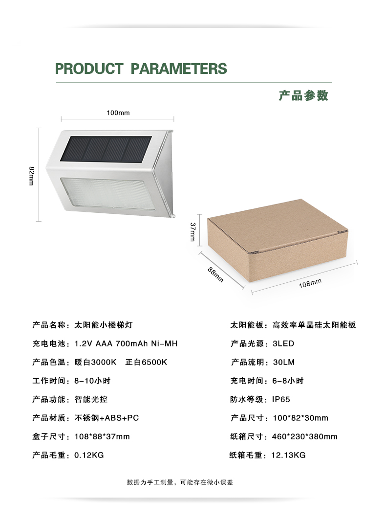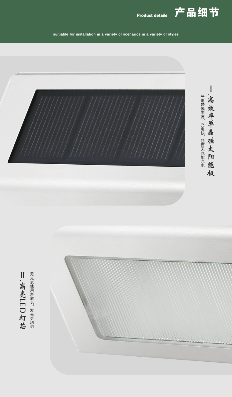 太阳能庭院灯 户外家用花园装饰台阶楼梯灯院子景观围墙壁灯