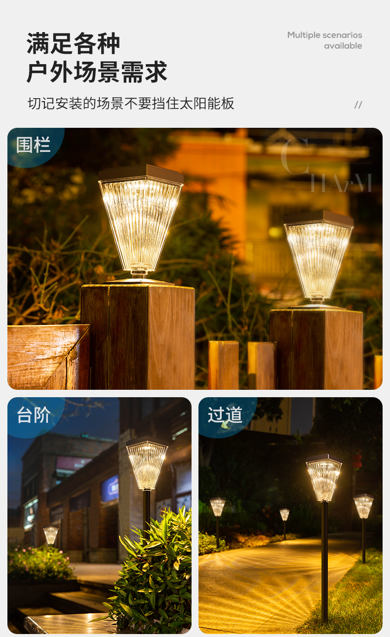 外贸新款太阳能灯 公园花园别墅院子氛围照明高亮地插户外庭院灯