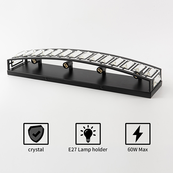 1. 现代照明设计:高品质水晶与黑色金属框架相结合,为这款4光浴室化妆灯提供工业与现代风格的结合。理想的现代室内照明设备,适用于农舍、别墅、度假村、酒店、餐厅。
